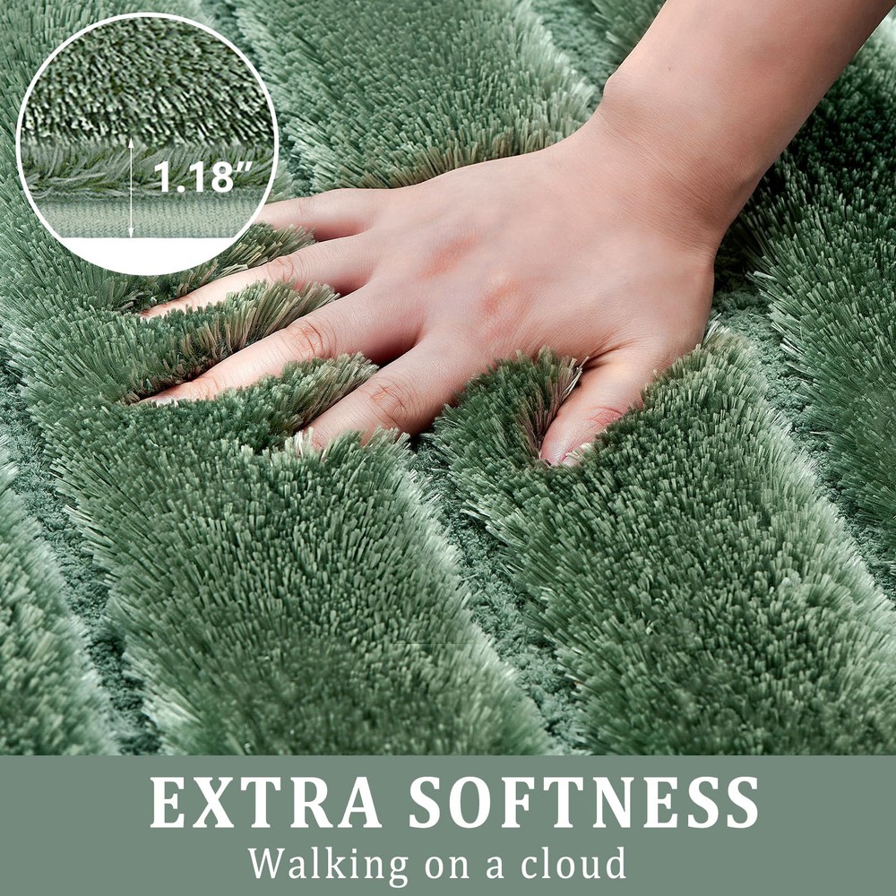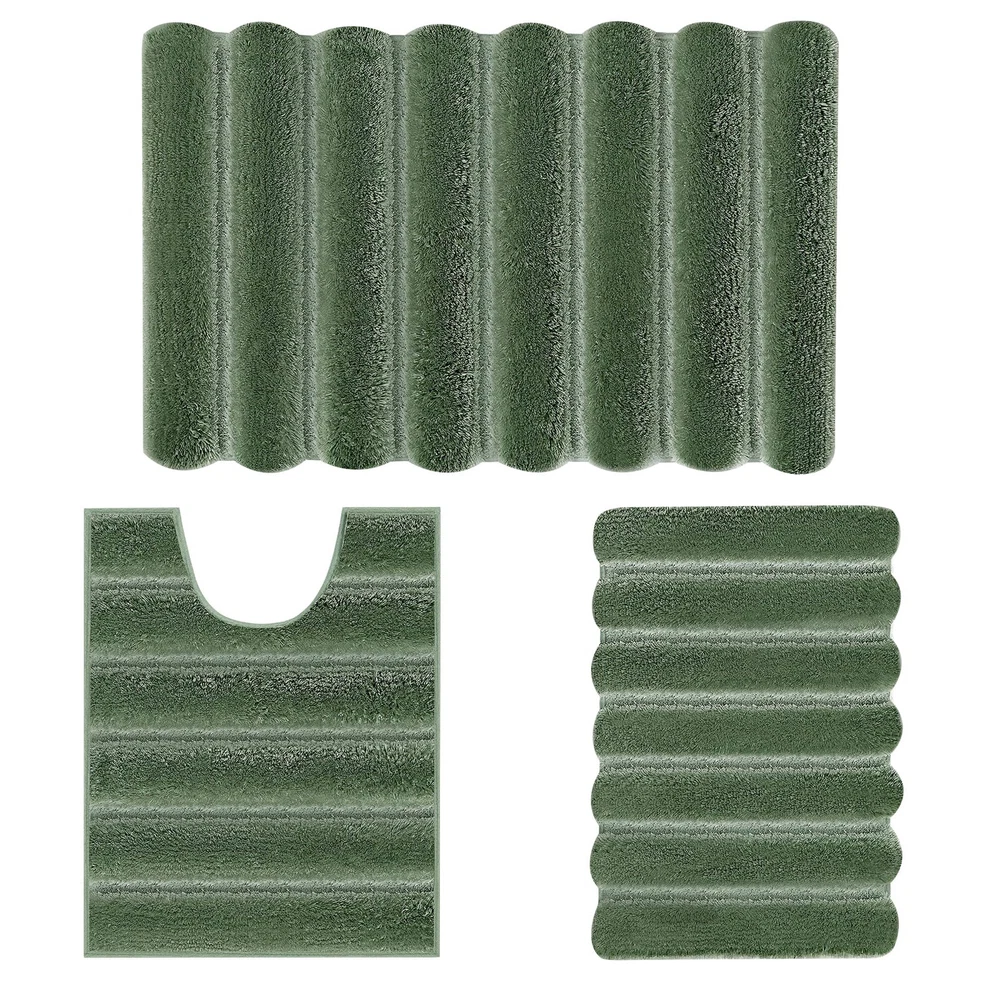 Bathroom Rugs Sets, Luxury Ombre Bath Mat Set, Non Slip Ultra Soft and Water Absorbent Bath Carpet, Machine Washable Quick Dry Bath Mats for Bathroom Floor, Tub and Shower [Luxury Bath Rugs Sets] Each of our bathroom set with 3 mats, includes 1 large bath mat 20" x 32", 1 small bath mat 17" x 24" and one U-Shaped toilet mat(24"x20"). Elevate your bathroom decor with this elegant gradient color stripe mats [Soft & Comfortable] The bath mats are made up of premium thick, soft and fluffy microfiber. From the moment you step onto this heavenly mat, you'll feel a sense of pampering that elevates your daily bathing routine. [Ultra-Absorbent] Our bathroom mat features a soft shaggy microfiber fabric that prevents water from dripping onto your floors as you step out of the bath, shower, or while getting ready by the sink. Keep your bathroom clean and dry! [Non-Skid TPR Backing] The bathroom rug is equipped with TP rubber backing and not PVC or glue, which is more non-slip and environmentally friendly. Prevent from slipping, please make sure the surface under the mat is smooth, clean and dry [A Breeze! Machine Wash] Cleaning this bath mat is a breeze. Simply toss it into the washing machine and it emerges fresh and rejuvenated, ready to provide that blissful stepping experience once again. Enhance your bathroom decor with 's captivating bath mat