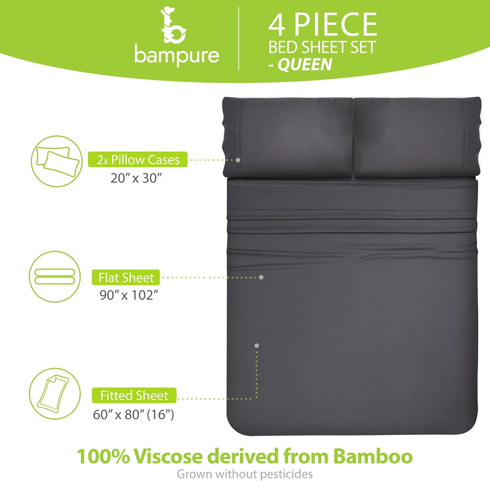 Store New Arrivals Add to Favorite View Feedback Contact Luxury Series Queen Sheet Set - 100% Pure Viscose Derived from Bamboo Sheets Queen Size - Super Soft Queen Cooling Sheets for Hot Sleepers - up to 16’’ Deep Pocket Queen Sheets (C Gray) Description Item model number Bamboo Sheets Queen Size Style Queen Charcoal Grey Pillowcase Width 2E+1 Inches Weave Type Sateen Pattern Solid Country of Origin China Theme winter Cartoon Character 4 Number of Pieces 4 Unit Count 1 Count Pillowcase Quantity 2 Material Viscose Derived from Bamboo Item Display Dimensions 13.38 x 2.95 x 9.45 inches Age Range (Description) Adult Seasons All Is Discontinued By Manufacturer No Included Components 1 Fitted Sheet, 2 Pillowcases, 1 Flat Sheet Closure Type Envelope Item dimensions L x W x H 13.38 x 2.95 x 9.45 inches Item Weight 5.21 pounds Pillowcase Length 6.69 Inches Fitted Sheet Pocket Depth 16 Inches Special Feature Wrinkle Resistant Color Charcoal Gray Thread Count 1800 Product Dimensions 13.38 x 2.95 x 9.45 inches Product Care Instructions Machine Wash, Hand Wash Only Size Queen - 4 Pieces Set PURE 100% VISCOSE DERIVED FROM BAMBOO: Experience the pure luxury of 100% viscose derived from bamboo sheet set. COMPLETE 4-PIECE QUEEN SIZE SHEET SET: Experience a touch of luxury every night with our complete 4-piece queen bed set. This set includes 1 luxuriously soft flat sheet (90"x102"), 1 fully elasticized fitted sheet (60"x80") for a secure fit on mattresses up to 16 inches deep, and 2 envelope-style colling pillow cases (20"x30") with overlapping closures for added comfort. Our queen bed sets are machine washable for easy care and get softer with every wash. ULTIMATE COOLING COMFORT & BREATHABLE BLISS: Experience the unparalleled softness and natural breathability of 100% viscose derived from bamboo cooling sheets. These cooling bed sheets are thermo-regulating, keeping you cool and relaxed all night long, perfect for hot sleepers or those with sensitive skin. The moisture-wicking properties ensure year-round comfort, allowing you to indulge in luxurious softness with every wash. DEEP POCKETS ,SILKY SMOOTH SATEEN WEAVE: Woven in a luxurious sateen weave, these 100% viscose derived from bamboo sheets offer an incredibly soft and smooth feel that gets even softer with every wash. Indulge in hotel-like comfort every night. Our deep pocket queen sheet set features a fully elasticized fitted sheet with a deep pocket (fits mattresses up to 16 inches) for a secure, stay-put fit. OEKO-TEX STANDARD 100 CERTIFIED: Responsibly sourced and Crafted from 100% viscose derived from bamboo bed sheets, a sustainable resource. These OEKO-TEX sheets are free from harmful substances for a healthy sleep environment. Unlike most, our sheets queen size bed set offer a luxurious, sustainable sleep experience you won't find anywhere else. Upgrade your sleep tonight! Product Description One Of A Kind Bamboo Sheets An average person spends around 26 years asleep in a lifetime. That reason only was enough of an inspiration for us to design our game- changing & luxurious Bampure bamboo bed sheets that will help you sleep like a baby every single night. Top Of The Line Experience Bampure bamboo bed sheet set has been carefully manufactured to bring you next level comfort. No more looking for a "cold spot" on your pillow, no more sweating at night, No more harmful synthetics - just pure relaxation. Corner Strap Included Every Bampure bamboo bed sheet set comes with a fitted sheet. Not just any fitted sheet - ours features corner straps that keep the fitted sheet in place at all times. Available In Multiple Colors Choose between a wide array of colors & decorate your bedroom like never before. 2 Pillowcases Every set comes with 2 envelope style pillowcases that not only look good, but also feel good. There's More To Bamboo Bed Sheets Than You'd Think Bampure bed sheets are as close to nature as it gets - they're crafted from 100% organic bamboo viscose. Bamboo sheets are also softer than any cotton sheets available. Combine all that with durability & breathability - it's a perfect recipe for a truly dreamy experience. Bring Nature To Your Bedroom Being in close touch with nature is beneficial in all areas of life. Then why wouldn't you bring it to the bedroom? The team at Bampure is here to provide our customers natural, organic & comfortable bedding. Discover our selection of nature-driven bedroom accessories! ABOUT US We offer the best prices around on high quality products. Our E-store includes media such as books, movies, music and games while offering electronics, toys, sporting apparel, clothing, tools, general home, garden items and more. SHIPPING We are always working hard to ensure your package arrives as soon as possible. Please understand that some factors like weather, high postal traffic, and the performance of shipping companies are outside of our control. We offer free shipping to the lower 48 states and ship within 2 business days of payment, usually sooner. We do not accept P.O. Boxes. Please provide a physical address. For shipping outside of the continental USA, we only use eBay's Global Shipping Program.The item is shipped to KY and then sent to the rest of the world. International customers are responsible for all duties and taxes. Continue to check out in order to calculate costs for shipping the item to your country. Messages regarding eBay's Global Shipping Program MUST be directed at eBay EXCLUSIVELY. RETURNS We offer a 30-Day Return Policy on items which you are not completely satisfied with. You have the option for a full-refund or an exchange of the item. No returns are available on items shipped outside of the USA. PAYMENT We accept PayPal. CONTACT US This page content is yet to come Please ad us to your favorite seller and visit again later Thank You CUSTOMER SATISFACTION We try our very best to make sure every customer is completely satisfied. If there's a problem, message us! We're happy to help.