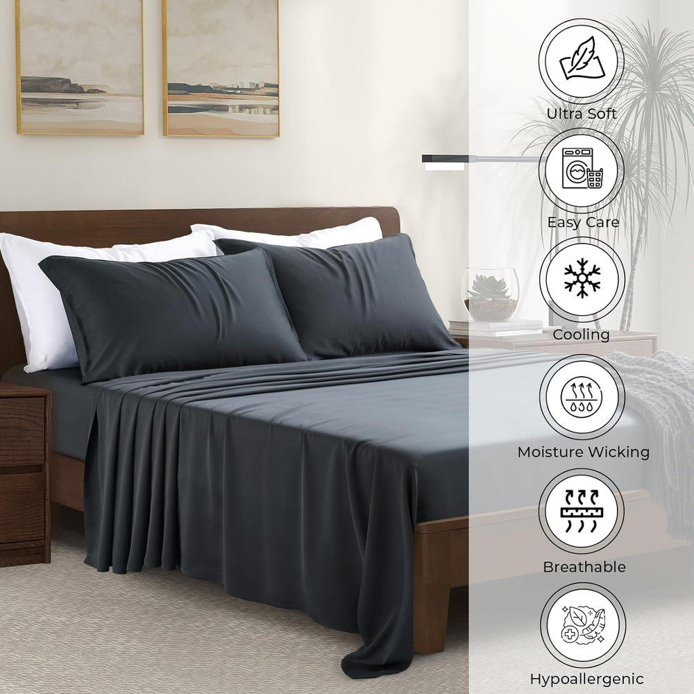 King Size 4-Piece Bamboo Rayon Cooling Bed Sheets for Hot Sleepers