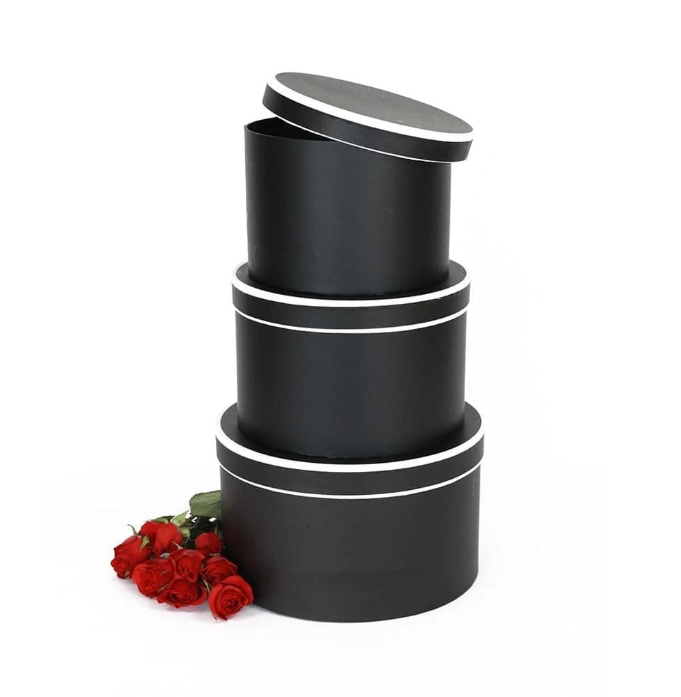 Premium Quality Round Flower Box, Gift Boxes for Luxury Flower and Gift Arrangements, Set of 3 pcs, with Lids, Size (S/M/L) Set of 3 : L 10 dia. x 5.9 inch M 8.6 dia. x 5.7 inch S 7.4 dia. x 5.3 inch Colors : Black with White Rim, White with Black Rim, Powder with Black Rim. Size : Set of 3 (Large, Medium, Small) Please choose desired color from the drop down menu. FLOWERS ARE NOT INCLUDED Ships in rigid carton box Please note that 20% restocking fee will be applied to orders that are returned not due to a seller’s fault. All dimension and details of the product are specified in the description. Please do not hesitate to contact us if you have any questions or need additional product details to avoid returns. Premium Quality Round Flower Box, Gift Boxes for Luxury Flower and Gift Arrangements, Set of 3 pcs, with Lids Sizes : L 10 dia. x 5.9 inch M 8.6 dia. x 5.7 inch S 7.4 dia. x 5.3 inch. Material : Cardboard, Fine Paper. Recyclable Colors: Black with White Rim, White with Black Rim, Powder with Black Rim. Please choose desired color from the drop down menu. FLOWERS ARE NOT INCLUDED