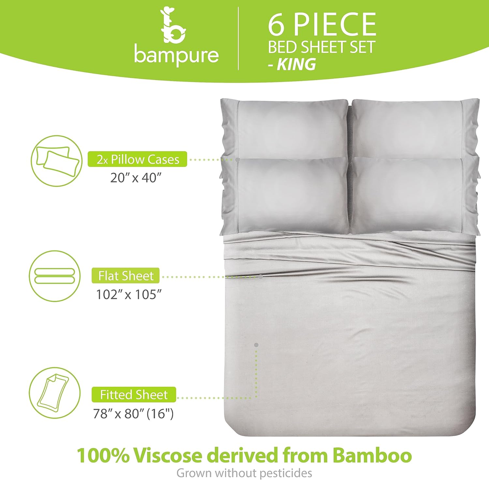 $ 65.47Luxury 6-Piece King Sheet Set - 100% Bamboo Viscose for Ultimate Comfort