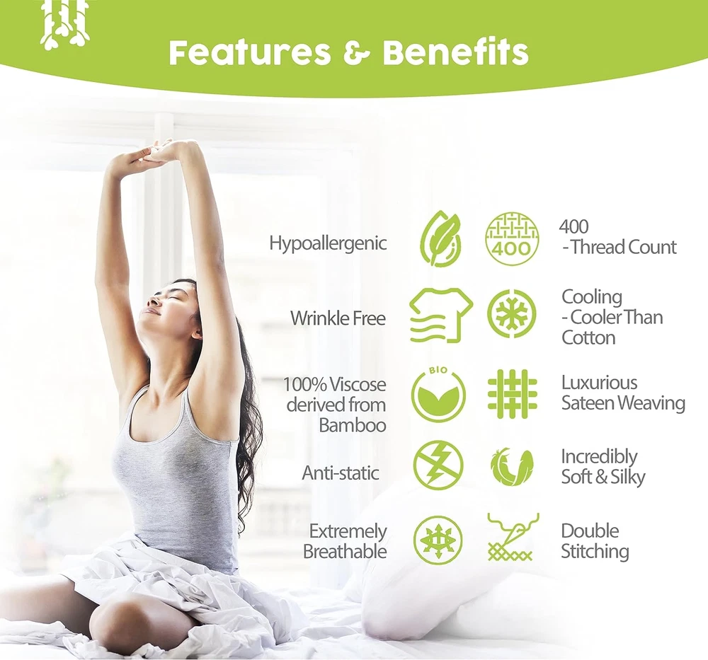 Store New Arrivals Add to Favorite View Feedback Contact Luxury Series 6 Pcs King Sheet Set - 100% Viscose Derived from Bamboo Sheets King Size - Product Information Item model number Bamboo Sheets King Size Style Contemporary/Minimalist Weave Type Sateen Pattern Solid Country of Origin China Theme Floral, Leaf Cartoon Character King Number of Pieces 6 Unit Count 1 Count Pillowcase Quantity 4 Material Viscose Derived from Bamboo Item Display Dimensions 13.38 x 3.54 x 9.45 inches Age Range (Description) Adult Seasons All Is Discontinued By Manufacturer No Included Components 1 Fitted Sheet, 1 Flat Sheet, 4 Pillowcases Closure Type Envelope Item dimensions L x W x H 13.38 x 3.54 x 9.45 inches Item Weight 6.87 pounds Fitted Sheet Pocket Depth 16 Inches Special Feature Deep Pocket, Breathable Color Light Gray Product Dimensions 13.38 x 3.54 x 9.45 inches Product Care Instructions Machine Wash, Hand Wash Only Size King - 6 Pieces Set ABOUT US We are proud to be based in the United States, with all of our products shipping directly from within the country. Our selection includes home décor, furniture, sports equipment, tools, pet products, and more. If you have any questions about our products, we’re always happy to help. SHIPPING We are always working hard to ensure your package arrives as soon as possible. Please understand that some factors like weather, high postal traffic, and the performance of shipping companies are outside of our control. We offer free shipping to the lower 48 states and ship within 2 business days of payment, usually sooner. For shipping outside of the continental USA, we only use eBay's Global Shipping Program. The item is shipped to IL and then sent to the rest of the world. RETURNS We offer Free Returns for 30-Days on items which you are not completely satisfied with. You have the option for a full-refund or an exchange of the item. CUSTOMER SATISFACTION We try our very best to make sure every customer is completely satisfied. If there's a problem, message us! We're happy to help.