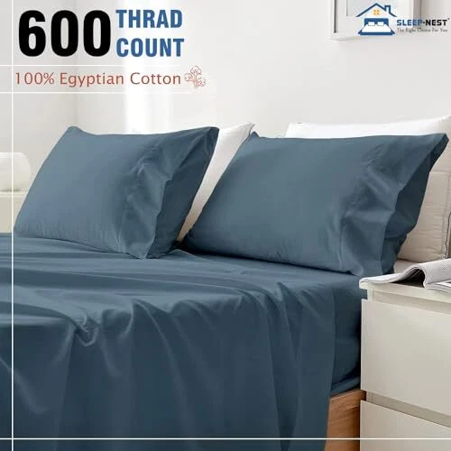 Return Policy Fast Delivery Trusted seller Luxury Queen Sheets Set 4 Piece Comfy Breathable 600 Thread Count 100% Pure Cotton Sheets for Queen 60"x80" Size Bedding Sheet Deep Pockets Fits Mattress Upto 16" Easy-Fit, Medium Blue Product Description This 4 Piece Queen Size Sheet Set includes : A deep pocket with durable elastic all around, A fitted sheet fits mattresses up to 16 inches deep. One flat sheet (90” W x 102” L), one fitted sheet (60” W x 80” L + 16), and two pillowcases (21"W x 32"L) are included in the queen size sheet set. The 4" Z-hem stitch design on the pillowcases and flat sheet, gives you a posh and elegant appearance. Head/Foot Side Indicators & Z Hem Features : Our bottom fitted sheet has an all-round elastic and a "head/foot indicator" for easy bed making. Head/foot side indicators make bed-making a breeze. The 4" Z-hem stitch design on the pillowcases and flat sheet gives you a posh and elegant appearance. Simply Use 100% Cotton Sheets and Say No To Microfiber : The 600 thread count sheets are made from 100% Egyptian pure Long satple cotton fabric. We use only natural and safe dyes. The sheets are unquestionably of superior quality. These Sateen Weave Cotton Sheets have a silky smooth feel, and a comfortable weight that hugs your body. Cool, comfortable and very soft, all while maintaining a bit of crispness. Brand with ISO Certification - Sustainability : Your sheets Set are meticulously inspected to the highest level of comfort and safety. Our fabric satisfies all of the product's high performance requirements. Sustainability is ensured by thorough product inspections and continuous audits. We check every item one by one to make sure it is perfect before packaging. Our ISO certification and Quality Management System are in place. Easy to Wash : Machine wash in cold water. Gentle cycle wash separately. Wash dark color separately. Tumble dry at low. Do not bleach. Needs to be steamed/pressed. Easy to use and fit. Shipping Returns Payment Shipping Shipping is FREE to all addresses other than APO/PO boxes in the lower 48 states. All our stock ships from US-based warehouses. Shipped via USPS or UPS (depending on location and package weight) Unless stated otherwise, all orders will ship within 24-72 hours of your payment being processed. Check our feedback to see the great reviews of FAST shipping we offer. Returns Seller does not accept returns Payment We currently accept payment via eBay managed payments only. Once payment is cleared, we will dispatch your shipment within 1-3 business days. Please refer to the "Shipping" tab for more information regarding shipping speed to your destination.