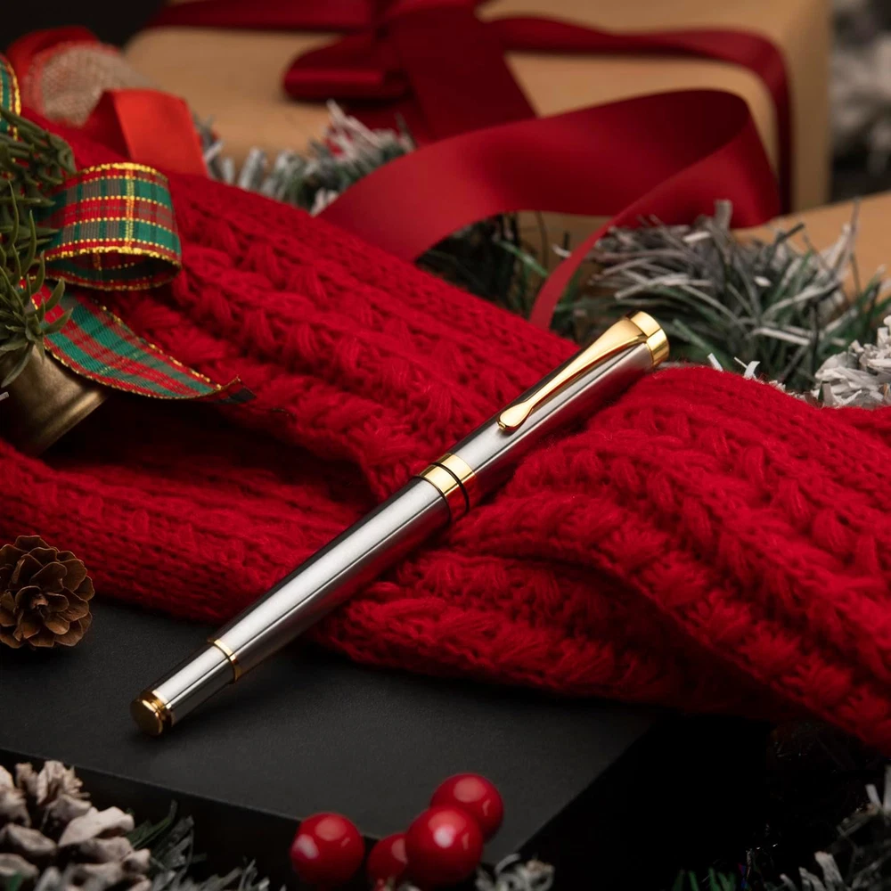 Luxury Silver Chrome Ballpoint Pen Gift Set for Men & Women, 0.5mm Refill