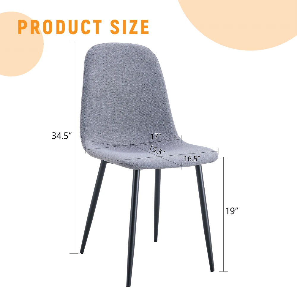 ✨ Key Features That Stand Out Premium Linen-Cotton Upholstery : Light gray linen-cotton fabric offers natural breathability and a soft, luxurious touch. It’s not only comfortable for long seating sessions but also easy to clean and maintain—keeping your chairs looking fresh for years. Sturdy Integrated Metal Legs : Full integrated metal leg structure (no excessive splicing) ensures maximum stability and durability. The sleek black metallic finish adds a touch of sophistication and creates a striking contrast with the light gray upholstery. Reinforced Stability Design : One-piece backrest and seat cushion for a smooth, minimalist look while enhancing structural stability. Cross-reinforced under-seat structure boosts load-bearing capacity, making each chair sturdy and reliable. Adjustable Anti-Slip Feet : Equipped with adjustable anti-slip foot pads to keep chairs stable on any floor surface—preventing scratches and ensuring safety for your family and floors. Versatile Style : Timeless light gray and black color combination complements modern, contemporary, industrial, or even traditional decor. Perfect for dining rooms, kitchens, breakfast nooks, or even as extra seating in living areas. Easy 15-20 Minute Assembly : Each chair comes with a detailed instruction manual and all necessary hardware. No professional tools needed—most people can assemble a chair in just 15-20 minutes. Eco-Friendly & Healthy : Natural linen-cotton material is non-toxic and eco-friendly, providing a healthy seating environment for your family. 📐 Product Specifications Specification Details Assembled Dimensions (L x W x H) 17.00" x 15.30" x 34.50" Individual Chair Weight 8.38 lbs Package Dimensions (L x W x H) 29.53" x 25.20" x 18.70" Package Weight 44.09 lbs Color Options Black, Light Gray Material Linen-Cotton Upholstery, Metal Legs 🛡️ Our Commitment to You 1 YEAR QUALITY WARRANTY: We stand behind the quality of our chairs. Enjoy a 1-year warranty against manufacturing defects. 30-DAY FREE RETURN & EXCHANGE: Not satisfied with your purchase? Return or exchange it for free within 30 days—no questions asked! 📝 Important Note Due to differences in monitor displays and lighting conditions, the actual color of the product may slightly differ from the images shown. This is a normal phenomenon and not a quality defect. Transform your space with chairs that combine style, comfort, and durability—backed by our unbeatable after-sales service. Add to cart today and experience the difference!