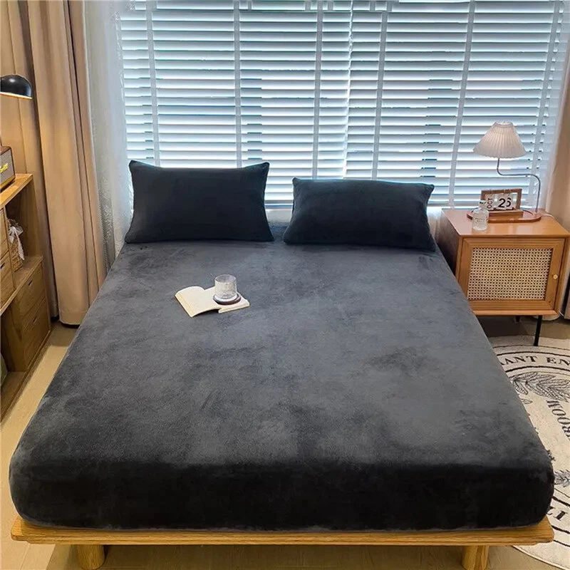 This plush fitted sheet is a game-changer for cold nights! The ultra-soft coral fleece feels luxurious against the skin and stays perfectly in place thanks to the deep elastic edges. It transforms my bed into a cozy winter retreat while protecting the mattress—so warm I don’t even need extra blankets. The quality is impressive for the price, and the rich color adds a touch of elegance. Washes well without losing softness. Perfect upgrade from regular sheets!