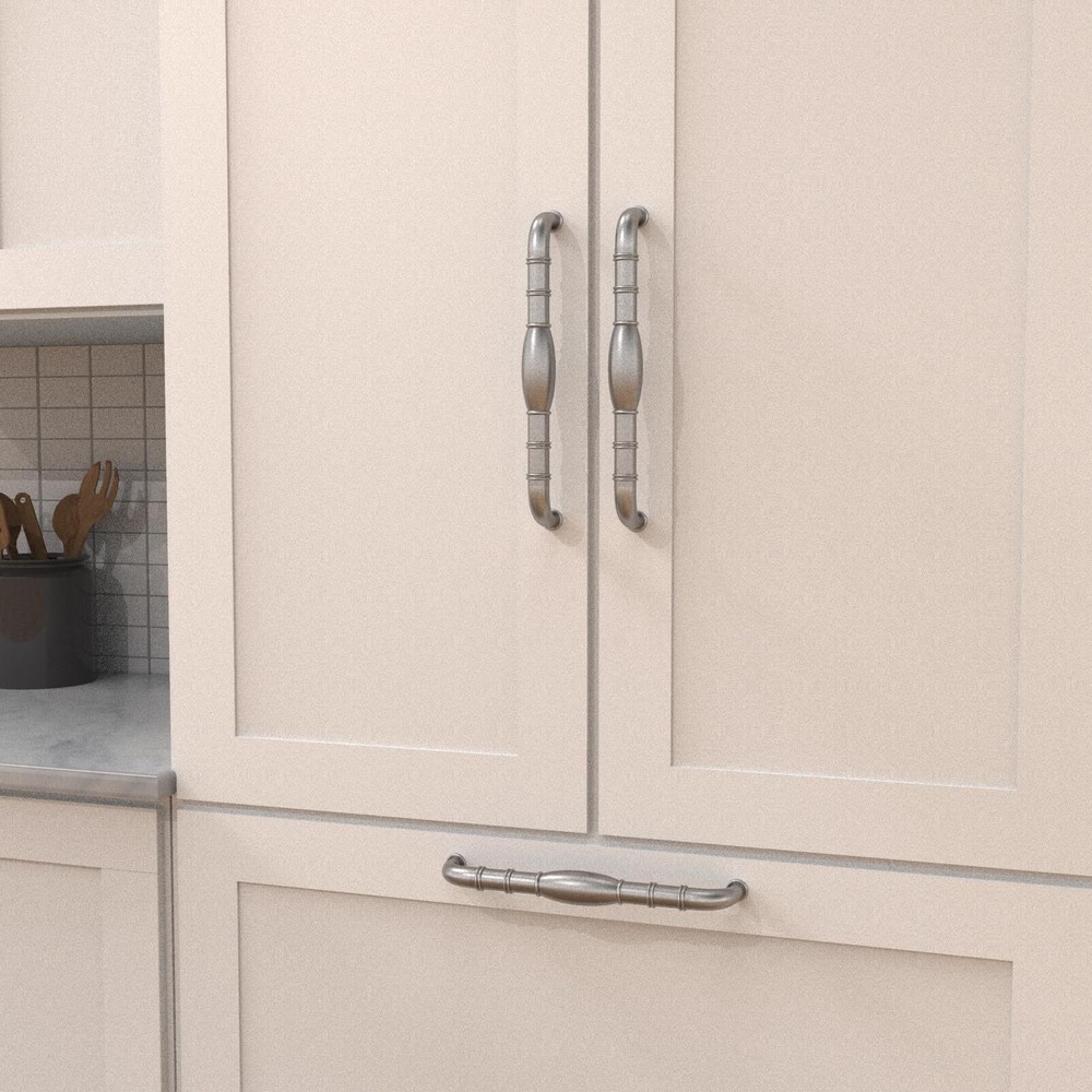 Product Description DESIGNED IN THE USA SINCE 1893: has been in business for 130 years and is a division of Belwith Products, an industry-leading brand in decorative and functional products. The company's in-house designers and craftsmen are dedicated to providing complete home solutions, making a reliable and trusted brand for all your hardware needs. OUR PULLS AND KNOBS ARE SOLID METAL: Our exceptional collections of solid core kitchen cabinet pulls and knobs are setting a new standard in quality and design. Crafted with a solid metal core, these pulls and knobs stand far above the hollow knockoffs flooding the market. Embrace the difference as you feel the weight and sturdiness in your hands, experiencing the unmistakable mark of true high-end hardware. Built to last, our hardware exudes unparalleled durability, ensuring it withstands the test of time and daily use. Elevate your space with our superior, solid core cabinet pulls - the epitome of elegance, strength, and unmatched craftsmanship. TRADITIONAL AND CLASSIC CABINET PULLS & KNOBS: Whether you prefer modern and bold or a more traditional and classic look, our 50+ collections come in a variety of shapes and styles in a multitude of sizes & finishes. These pulls & knobs are a popular option that adds a timeless charm to your Drawers & Drawers. CUSTOMIZABLE HARDWARE OPTIONS: With dozens of collections to choose from, you can mix & match different hardware styles to create a unique look that suits your personal taste & home décor. With a variety of sizes & finishes, you can easily customize your Doors and Drawers to your liking. From the Manufacturer Designed to add style to your kitchen cabinets and doors. Big pulls that go on big doors. Add a more modern look with this large pull. HIGH-QUALITY, SOLID METAL CORE: Crafted with a solid metal core, our cabinet pulls and knobs stand far above the hollow knockoffs flooding the market. Embrace the difference as you feel the weight and sturdiness in your hands, experiencing the unmistakable mark of true high-end hardware. Built to last, these pulls exude unparalleled durability, ensuring they withstand the test of time and daily use. Elevate your space with our superior, solid core pulls and knobs- the epitome of elegance, strength, and unmatched craftsmanship. DESIGNED IN THE USA SINCE 1893: Our designers reside in our corporate office in Grand Rapids, Michigan. Over the years they have sketched, molded and created over 50 unique collections. At we offer a range of high-quality and stylish options to choose from. Mix and match pulls, cup pulls, and knobs to create a stunning and cohesive look in your kitchen, bathroom and furniture. JEWELRY FOR YOUR KITCHEN CABINET DRAWERS: Surprise your Drawers with some new "Kitchen Cabinet Jewelry." Our knobs and cabinet handle pulls are an easy choice for upgrading your kitchen's aesthetic appeal (and making your friends jealous!). With simple yet elegant silhouettes, our variety of collections of pulls and knobs complement any decor style and add a touch of sophistication to every space. Their durable construction and easy installation make them a hassle-free choice for homeowners and interior designers. CABINET HANDLE QUALITY YOU CAN TRUST: cabinet pulls and knobs are a trusted choice for those looking for top-notch hardware for homes, kitchens, bathrooms, and furniture. With over a century of experience, our team of designers, craftsmen, and engineers creates unique and lasting products that span classic to contemporary styles. Add beauty and functionality to your space with our timeless and versatile cabinet hardware. ERGONOMICALLY DESIGNED HANDLES & KNOBS: In addition to providing a stylish and functional upgrade to your space, our cabinet pulls and knobs are designed to be ergonomic and easy to the touch. Designed for both style and effortless use, our cabinet pulls come with all the necessary mounting hardware for quick installation. Black Nickel Vibe Finish Mounting Hardware Included Williamsburg Collection