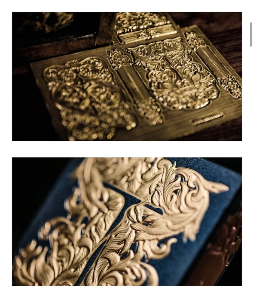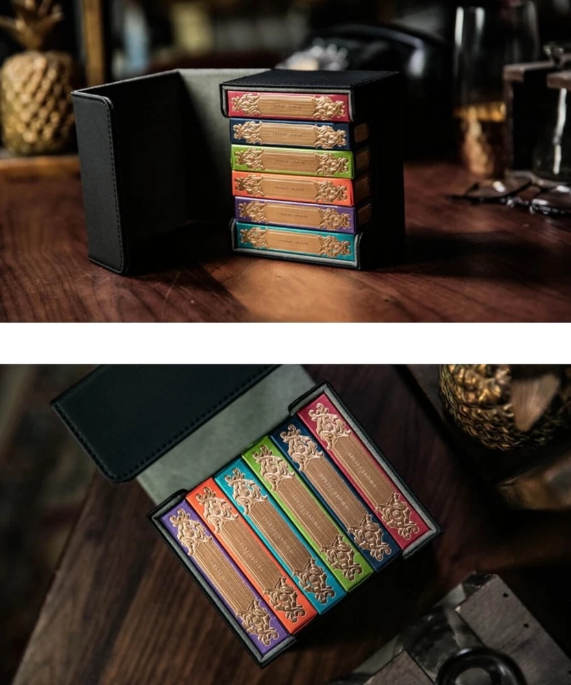 In addition to Red and Blue, it also contains extremely limited colors of Orange, Green, Sky Blue, Purple, 6 decks in total. Limited to 250 sets , numbered 001-250. This set is numbered 106. Each deck in the set has a corresponding white numbered seal. Each deck of cards has the same seal . The Collector Set comes with an exclusively limited collection box which is made of leather with flannelette inside, comfortable touch, easy to carry, and provides excellent protection for the cards. A magnetic hidden buckle brings a full sense of ritual when opening and closing.