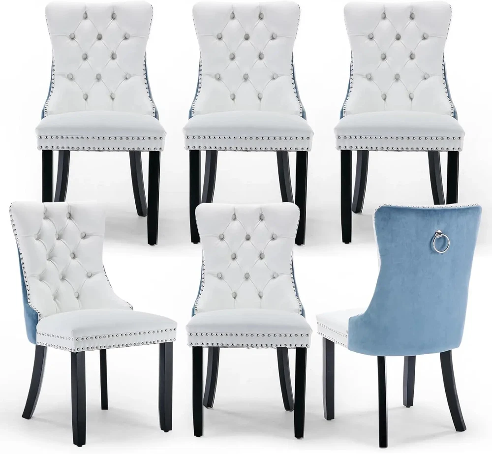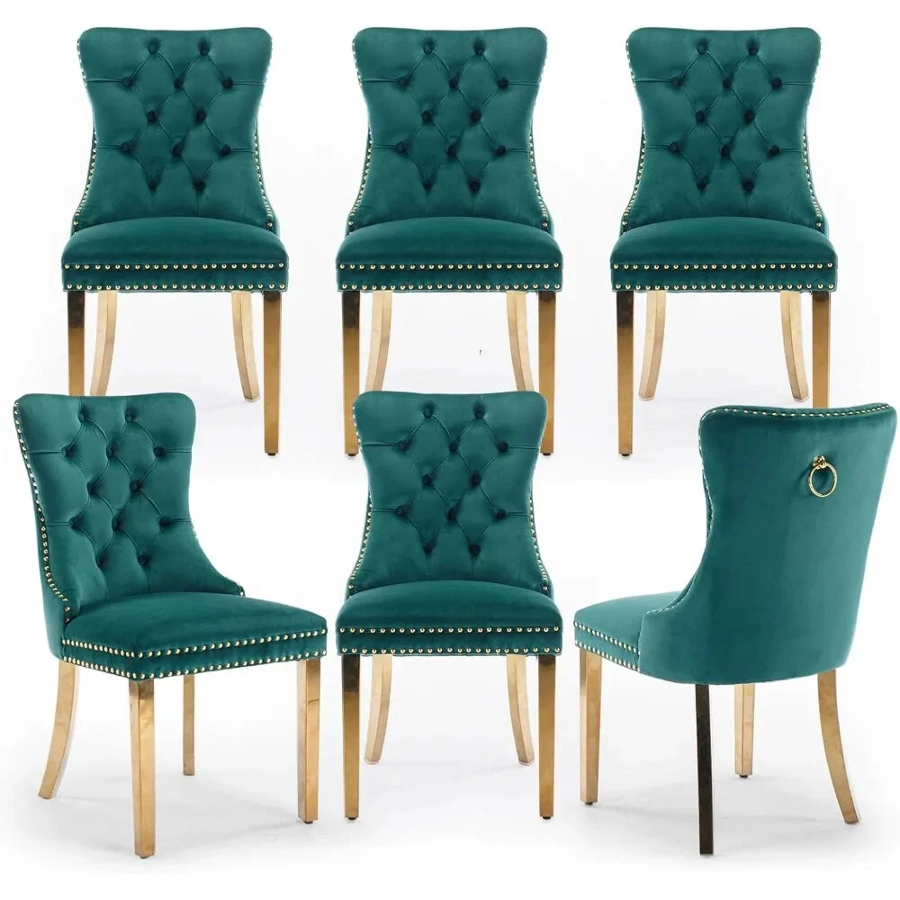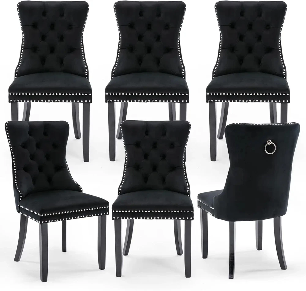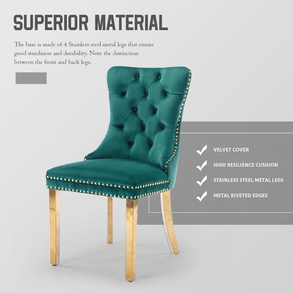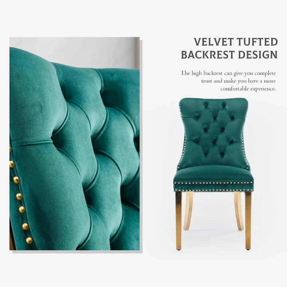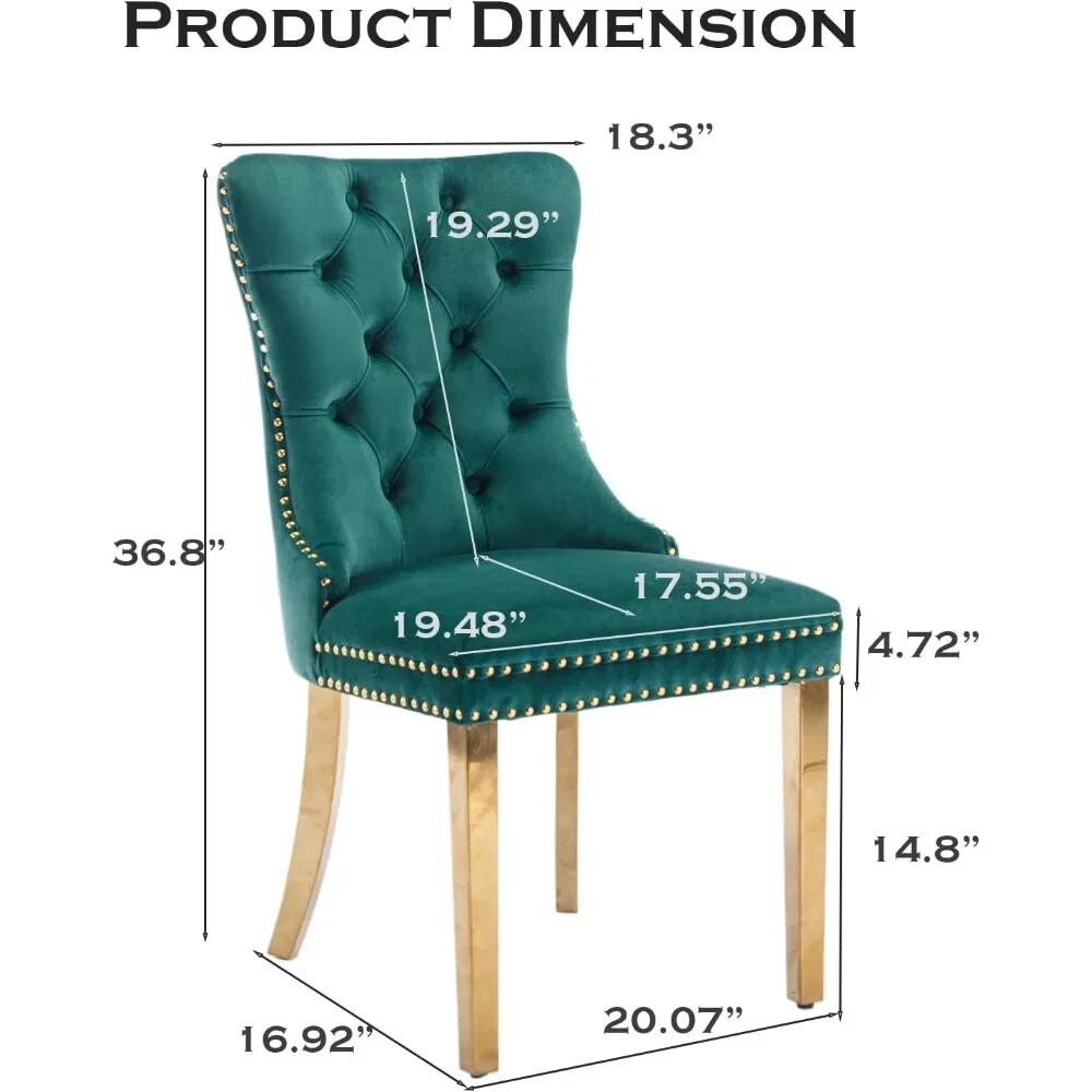 Product Description About this item 【Mid-Century Dining Chairs】: Our dining chairs feature a fusion of modern and mid-century styles. Made of high-quality fabric, our fabric is thicker and more durable. The cushion and backrest of the dining chair are made of highly padded elastic sponge, which is of high quality and durable. 【Multiple Fabrics】: The backrest of the dining chair is designed with a curved high backrest, the front of the backrest has delicate tufted buttons and the back has added smooth pull ring. Our dining chairs are offered in velvet, with PU and velvet patchwork, as well as linen fabrics to meet your multiple needs. 【Detailed Leg Design】: Our kitchen side chairs have curved back legs and individually adjustable pads on the front legs to make the chairs easier to stabilize. Dining chairs are available in three leg materials-wooden legs, gold-plated legs, and silver-plated legs. Match perfectly with different materials and color fabrics to make unique design dining chairs. 【About Dining Chair Set】: Dining chair size: 19.7 "L x 24.4" W x 37.5 "H, Maximum weight capacity: 280 lbs. Each box contains 2 dining chairs and matching mounting accessories.