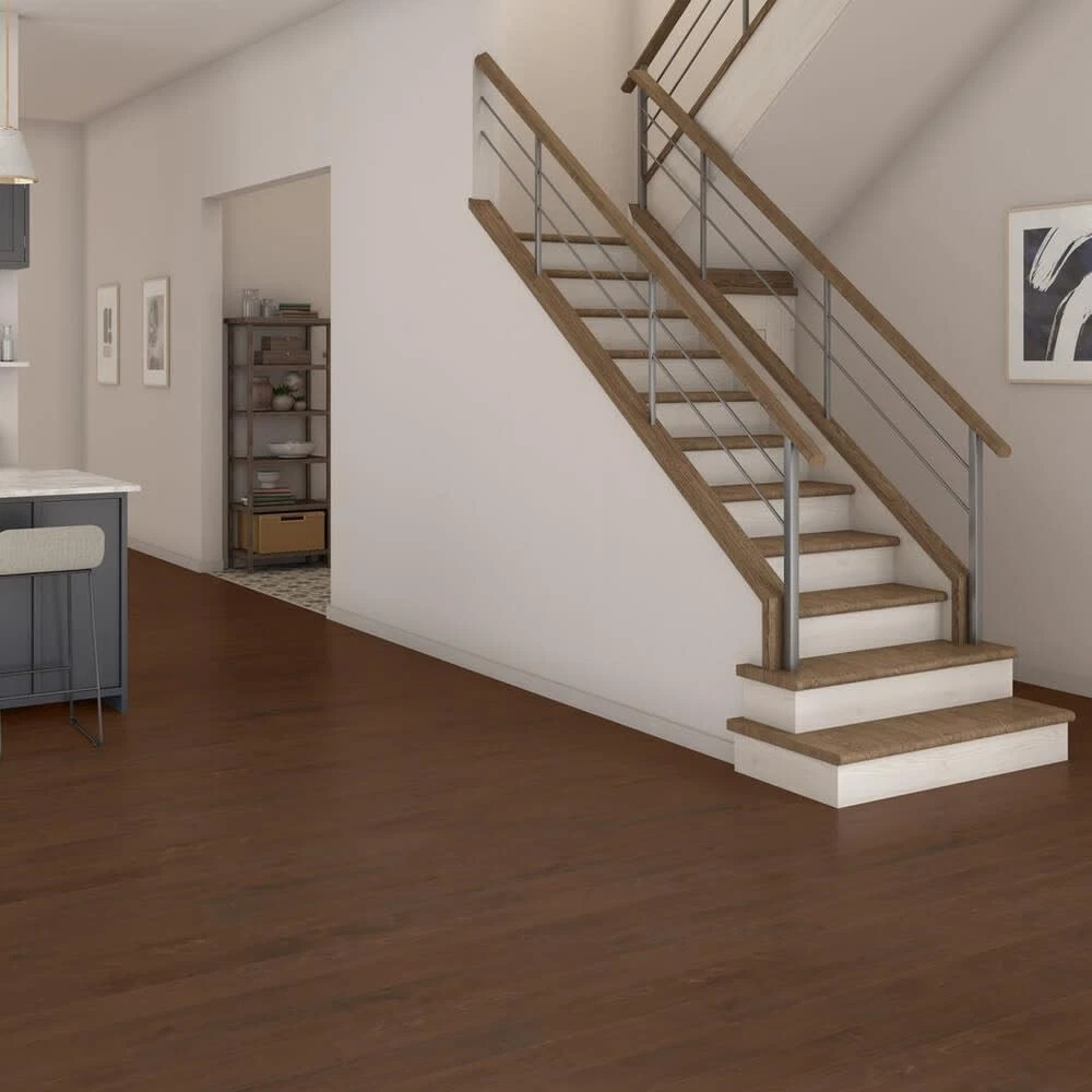 Luxury Vinyl Flooring: 6" x 48" wood-look planks in various brown, grey and white tones Authentic Design: HD design with medium-variation Easy Installation: Dry back for simple glue down installation Natural Wood Look: Textured surface for a realistic look and feel 100% Waterproof: Quality-performing product thoughtfully designed for long-lasting reliability 6 Year light commercial warranty 15 Year residential warranty