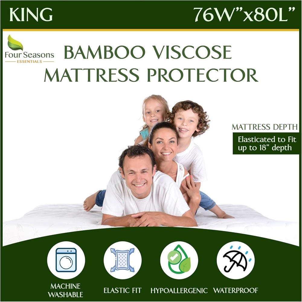 Luxury Waterproof King Size Mattress Cover - Cooling Viscose & Allergen Relief ‹ › ‹ › ‹ › ‹ › ‹ › ‹ › ‹ › ‹ › ‹ › Luxury Waterproof King Size Mattress Cover - Cooling Viscose & Allergen Relief - Composition: 55% Polyester, 45% Viscose Derived from Bamboo - Imported Features: Made with cooling viscose derived from bamboo to provide an ultra-soft and luxurious feel. Fitted sheet style design with elastic all around, fitting any mattress thickness up to 18 inches. Ultra soft quilted jacquard pad with 3D airflow for breathability while remaining 100% waterproof. 100% waterproof protection with an inner polyurethane lining that blocks liquids and moisture. Impenetrable cover shields against allergens, dust, and pet hair for a healthier sleep environment. Comfortably stretchable and noiseless for an undisturbed night’s sleep. Durable, machine washable for easy cleaning and long-lasting protection. Benefits: Maintains a dry and protected mattress, even in the presence of spills and accidents. Provides allergen relief, promoting healthier and easier breathing during sleep. Designed for optimum comfort - soft, breathable, and noiseless to ensure a restful night. Strong enough for daily use while being easy to clean and maintain. Why choose our Luxury Waterproof Mattress Cover? Experience the ultimate in sleep comfort and protection with our Luxury Waterproof King Size Mattress Cover. Crafted from viscose derived from bamboo, this beautifully designed cover not only ensures your mattress stays dry and safe from spills and accidents but also creates a sanctuary free from allergens. With its stretchable, breathable fabric, you can sleep soundly without worrying about crinkles or discomfort. Transform your sleep space into a luxurious retreat - protect your mattress and enhance your well-being with our waterproof mattress cover. Order yours today and enjoy a cleaner, healthier night's sleep! Shipping Free & Fast Shipping - We offer free shipping to most of the USA with a normal delivery time of 3-7 days. However, due to the current situation, additional delivery time (up to 3 weeks) may be required for some items. Alternative Carriers - We may use alternative carriers (e.g. USPS, FedEx, UPS, etc.) to ensure your package arrives safely and on time. Due to the use of multiple carriers, we are unable to provide a tracking number automatically. Handling Time - Orders are processed and shipped within 1-2 business days of receiving cleared payment. Shipping Restrictions - Shipping to Alaska, Hawaii, Puerto Rico, Guam, and other US territories may incur shipping charges or delivery restrictions. Please contact us before ordering, or your order can be refunded/cancelled. State Restrictions - There may be restrictions based on your state of purchase. For example, certain items may not be shipped to California due to state regulations. Contact for Tracking Updates - If you require tracking updates or have any concerns about the delivery of your order, please feel free to contact us, and we will be happy to assist you. Return 30-Day Hassle-Free Returns - We want you to be completely satisfied with your purchase. If you are not, you can return the item within 30 days of receiving it for a full refund or exchange. Easy Return Process - To start a return, simply contact us and we will provide you with a prepaid return shipping label and detailed instructions. Restocking Fee - There are no restocking fees for returns. However, the buyer is responsible for return shipping costs if the return is not due to a seller's error. Refund Processing Time - Refunds will be processed within 5 business days of receiving the returned item in its condition. Payment We accept all major credit cards, PayPal, and Apple Pay for your convenience. Your payment information is secure and encrypted to ensure a safe and seamless transaction. Please complete your payment within 3 days of purchase to avoid any delays in shipping. Feedback Your feedback is extremely important to us. We strive to provide the best products and customer service possible. If you are satisfied with your purchase, please take a moment to leave us a positive review. If you have any concerns or issues with your order, please contact us before leaving negative feedback. We are committed to resolving any problems and ensuring your satisfaction. Contact Us If you have any questions or concerns, please feel free to out to our customer support team. You can contact us through the eBay messaging system. We are available Monday to Friday, 9:00 am to 5:00 pm EST, and we will do our best to respond to your inquiry within 24 hours. Buy it now and enjoy a pleasant shopping experience! Item Length: Mattress Protector Item Width: Mattress Protector Unit Quantity: 2.5 Material: Polyester,Viscose Features: Cooling,Waterproof,Deep Pocket,Tear-Resistant,Breathable Care Instructions: Machine Wash Theme: Luxury Department: Adults Room: Bedroom Size: King Type: Mattress Protector Fill Material: 100% Polyester Closure Type: Pull On Color: Natural Viscose Insulation: Cool Style: Modern Shape: Rectangular Thread Count: 300 GSM (Grams per Square Meter): 301 to 450 Unit Type: lb