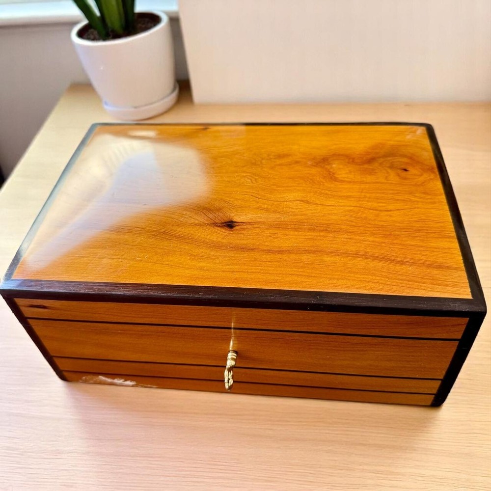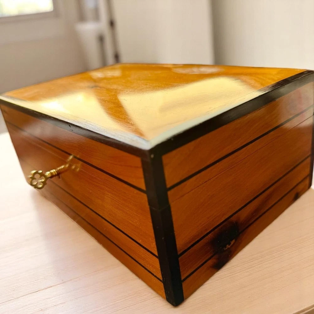 The jewelry box is very pretty, very carefully made, very much in the style of "good old craftsmanship". The seller is nice and helpful, he answers emails immediately. The shipment was delayed, but it was not the seller's fault, I was informed about it. It arrived on time. I recommend the seller and his items.