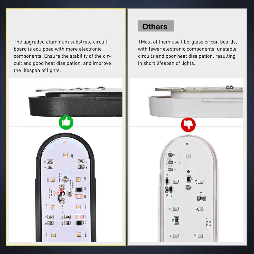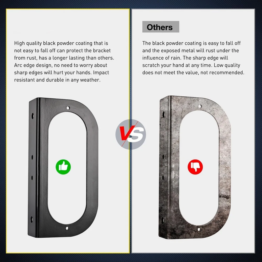 Brillo excepcional: Cada luz trasera cuenta con 10 chips LED 3030 de alta calidad que emiten una luz roja superbrillante, con alto brillo para las luces de giro y freno, y bajo brillo para las luces traseras, lo que mejora la visibilidad y garantiza una noche más segura. Instalación rápida: Primero, instale la arandela de goma y la luz trasera ovalada con el enchufe de 3 clavijas en el soporte. Alinee el orificio del soporte con el orificio del vehículo, inserte el tornillo en el orificio y apriete la tuerca. Finalmente, conecte los 3 cables a los cables correspondientes del vehículo. Diámetro del orificio redondo: 0,39". Diseño único mejorado: La luz trasera cuenta con "orejas" únicas en ambos lados, muescas mejoradas en el interior del ojal y una fijación más firme entre el enchufe de 3 clavijas y este. Esto ayuda a que la luz y el ojal se ajusten perfecta y firmemente al soporte de montaje, y el enchufe de 3 clavijas se fija firmemente a la luz. Resistente a las vibraciones, no tendrá que preocuparse por perder la luz ni los cables. Resistente a la intemperie: La luz trasera ovalada está sellada con silicona y cuenta con clasificación de impermeabilidad IP65, siempre preparada para diferentes tipos de inclemencias del tiempo. El soporte de montaje es de metal duradero recubierto con polvo negro de alta calidad. No se decolora ni se oxida fácilmente. Amplia aplicación: Ajuste universal para sistemas de 12 V CC. Funciona como luz de giro/freno y luz trasera para todo tipo de camiones, remolques, tractores, semirremolques, remolques para caballos, remolques de viaje, camiones de volteo, barcos, vehículos especiales, etc.