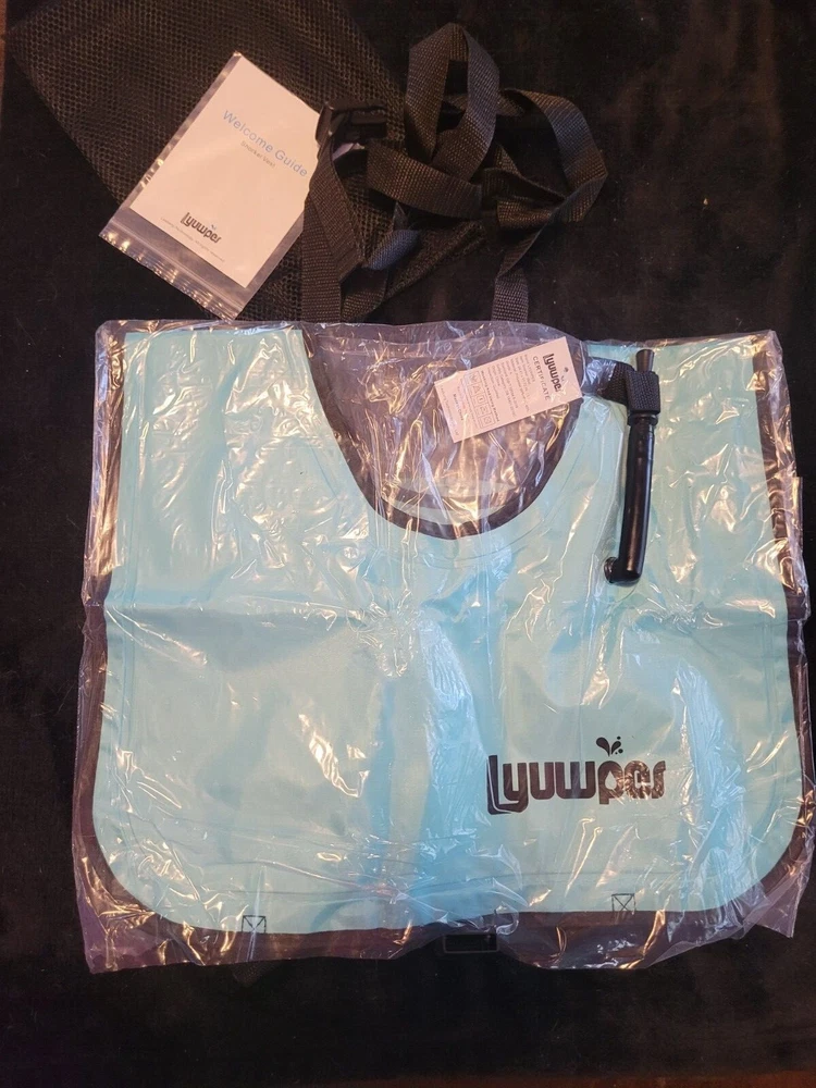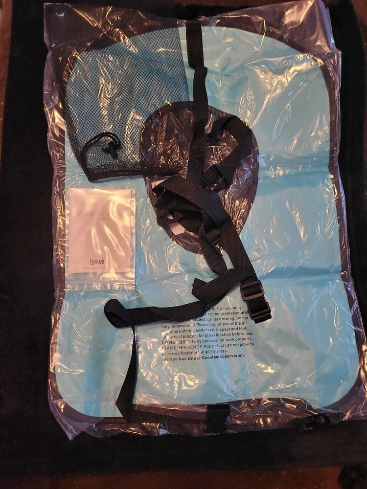 Get ready for your next water adventure with this Lyuwpes inflatable adult snorkel free dive vest. Made in China, this vest has a load capacity of up to 220 lbs, making it perfect for a wide range of body types. Whether you're going for a swim, snorkeling, or engaging in any other water sports, this vest will give you the safety and buoyancy you need to enjoy your time in the water. The bright blue color adds a pop of fun and visibility to your outfit, while the brand name assures you of the quality of the product. Add this vest to your water sports gear for a safe and enjoyable experience. Vest measures 25" top to bottom and 18" side to side uninflated. Inflated it measure just over 20" top to bottom and over 15" side to side and is almost 4" thick.