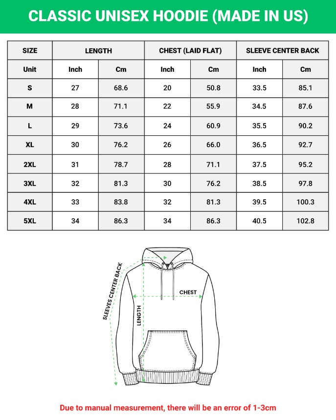 Classic Unisex Hoodie - Comfort Meets Style Embrace both comfort and style with our Classic Unisex Hoodie, proudly crafted in the USA for superior quality. This hoodie is the perfect blend of cozy and cool, offering a relaxed fit that suits everyone. Made from a durable 50/50 cotton-polyester mix, it?s designed to keep you comfortable while standing the test of time. Key Features: Premium Material: Crafted from an 8 oz/yd² fabric, this hoodie combines 50% cotton with 50% polyester (Heather Sport Dark Navy is 60% polyester/40% cotton). The fabric absorbs sweat well, keeping you comfortable all day. Stylish Design: Features include a double-lined hood with color-matched drawcord, ribbed cuffs, and a convenient front kangaroo pocket for easy storage. Vibrant Colors: Available in a wide range of hues, including Ash, Black, Carolina Blue, Charcoal, Dark Heather, Forest Green, Gold, Heliconia, Irish Green, Light Blue, Light Pink, Maroon, Military Green, Navy, Purple, Red, Royal, Sport Grey, White, Cherry Red, Dark Chocolate, Heather Sport Dark Navy, Orange, Sand, Graphite Heather, Safety Orange, Navy Heather, and Antique Cherry Red. Customizable: Personalize your hoodie with your own text or design through our fast, no-minimum print-on-demand service, using digital printing technology for bright, vibrant prints that last even after washing. Versatile: The Classic Unisex Hoodie is perfect for any occasion, effortlessly complementing any item in your wardrobe. Its heavyweight, soft fabric ensures you feel extremely comfy and pleasant. Material Composition: Main Fabric: 50% Cotton / 50% Polyester (All others) Heather Sport Dark Navy: 60% Polyester / 40% Cotton Quality Assurance: Brands: Our products mainly use Gildan 18500 blank products. In case Gildan?s blank product is out of stock, we will use high-quality alternatives from Hanes, Jerzees, or Port & Company. Shipping & Processing: Processing Time: 1-3 business days. Shipping Time (US): 3-5 business days. Shipping Time (EU/ROW): 15-20 business days. Note: Please allow an additional 2-6 days due to external factors beyond our control. Discover More: Explore more of our custom hoodies in our men?s and women?s categories. Whether you?re looking for a personalized gift or adding a unique piece to your wardrobe, our print-on-demand hoodies offer versatility and style for any occasion Customer Reminder: Our commitment to quality extends to our return policies, which cover the following scenarios: Unsuccessful delivery or lost items. Damaged products during shipping. Products that significantly differ from the description or images. Please Note: Double-check your shipping address for accuracy. We are not responsible for failed deliveries due to incorrect address details or related issues. Customer Support: We value your satisfaction above all else. Should you encounter any problems with your purchase, reach out to us first before leaving negative feedback or opening a dispute. We are dedicated to resolving your concerns swiftly and ensuring you have a great shopping experience with us. Final Words: If you?re pleased with your purchase, a positive review would be greatly appreciated. Your feedback encourages us and helps our small business thrive. Thank you for choosing our product, and we look forward to serving you again in the future!