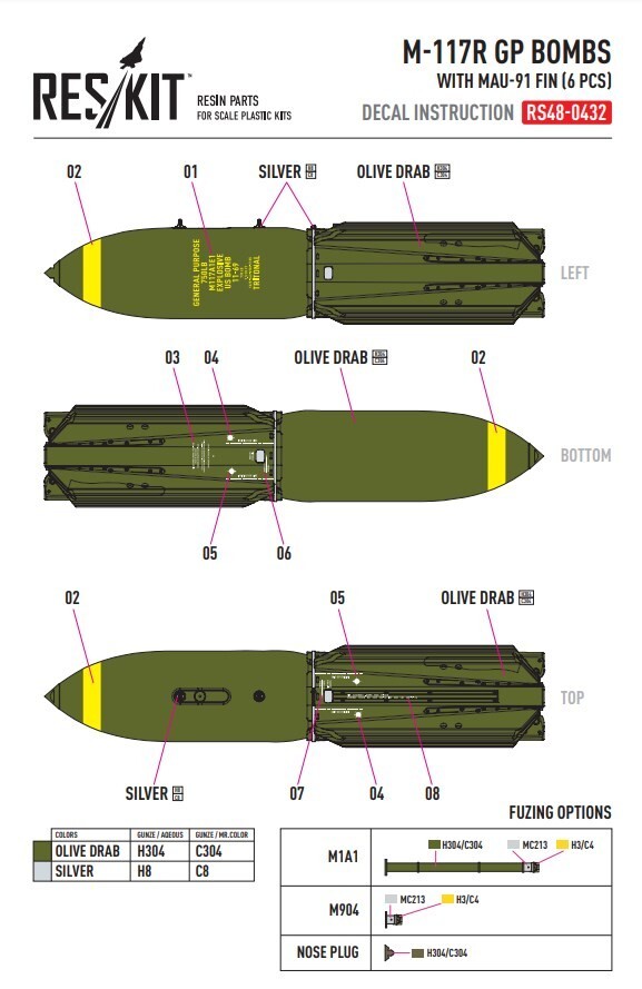 M-117R GP Bombs with MAU-91 fin (6 pcs) (F-105,F-111, A-4 ,F-4, F-5, F-104, F-100, A-1 Skyraider, B-52, Canberra) (3D Printing) Scale 1:48 ResKit RS48-0432 for Aircraft Model Kit Premium Resin & 3D-Printed Upgrade for Scale Plastic Model Kits Take your scale model builds to new heights with this detailed set from ResKitβa trusted name in professional-grade accessories for plastic model kits . ResKit Premium Model Accessories β Elevate Your Scale Models with Expert Craftsmanship Upgrade Your Builds with ResKit: Discover highly detailed resin & 3D-printed accessories designed for scale plastic models . Perfect for aircraft , military vehicles , helicopters , and figures , ResKitβs precision-crafted parts bring unmatched realism to your projects. Scale: 1:48 Manufacturer: RESKIT (Accessories for Scale Plastic Kits) Model (SKU): RS48-0432 Country/Region of Manufacture: Ukraine Condition: New in Box π¬ Need more stock? Weβve got you! Message us to customize your order quantity . As direct partners with manufacturers, we restock fast to meet your needs. π― Rapid replies assured! Available all day, with only time zones causing minor delays. π π Order Transparency We're here to help and will keep you informed on your order status. π Product Specifications Material: Resin / 3D Printed Features: Kit Kit description: Unpainted, Unassembled, Kit do not contain paints and glue Category: Resin & 3D accessories Type of equipment: Aircraft Type of product: Arms and Weapons Recommended kit: Any / Universal Country of origin: USA Skill level: Advanced Type aircraft or vehicle: Republic F-105 Thunderchief General Dynamics F-111 Aardvark Douglas A-4 Skyhawk McDonnell Douglas F-4 Phantom II Northrop F-5 Freedom Fighter/Tiger II Lockheed F-104 Starfighter Douglas A-1 Skyraider Boeing B-52 Stratofortress Canberra ResKit is your reliable partner in the world of modeling, Enhance your projects with our accessories and parts that will take your hobby to the next level! π Why Choose ResKit? β¨ Exceptional Precision: Each component is designed to replicate the real aircraft parts with maximum fidelity. β¨ 3D & Resin Excellence: Combines cutting-edge 3D printing with traditional resin casting for superior quality. β¨ Perfect Compatibility: Seamless fit with major plastic kit brands. β¨ Expansive Range: Explore upgrades for aircraft, helicopters, vehicles & more in multiple scales. About the Reskit Brand ResKit β Premium Upgrade Parts for Scale Model Kits Enhance your model builds with ResKit β top-tier resin and 3D-printed accessories for scale plastic kits in 1:32, 1:35, 1:48, 1:72 & 1:144. Our product line includes aircraft wheels, landing gear, pylons, engines, nozzles, cockpits & weapons. Designed for realism, precision, and easy fit β perfect for aviation and military modeling enthusiasts. π But Wait, There's More! π Visit Our Full Store β Shop Now βοΈ See All ResKit Products β Browse Collection π Take Your Scale Modeling to the Next Level! Step into the extraordinary world of scale modeling with our premium selection of scale model accessories , crafting supplies, and tools. Whether you're a seasoned modeler or just starting, we offer everything you need to create lifelike replicas of automobiles, aircraft, ships, and trains. Elevate your projects with: π¨ Miniature Components for added realism. π οΈ Precision Tools to craft every detail flawlessly. π‘ Supplies designed to unleash your creativity. Let your imagination soar with the best in scale model craftsmanship! π Customer Support: Fast response times Friendly service & custom order assistance Need multiple items? Message us β we can adjust quantity or restock quickly! π About Us ποΈ We provide a wide selection of 100% brand-new products at competitive prices βdirect from manufacturers to you. π¬ Need help? We're always here to assist you! βοΈ Enjoy a simple, secure, and worry-free shopping experience. π³ Payment π΅ All eBay payment methods accepted, giving you convenience and flexibility. π‘οΈ Transactions are protected by eBayβs Buyer Protection Program for your peace of mind. π Shipping Details βοΈ Fast & Reliable Shipping : Orders are shipped via trusted airmail services and delivered by your national postal service. π¦ Tracking Included : Monitor your package every step of the way. Shipping from Ukraine . Estimated delivery: 10β25 days . Handling time: 1β5 business days . π Shipping Discounts π° Save more with combined shipping discounts ! 50% off shipping for each additional item. π§ Request an invoice before payment for an updated total. π Hassle-Free Returns π Not satisfied? No worries! β Refunds issued promptly upon receipt of the item in its original condition. π― Shop with confidence and craft your perfect models today!