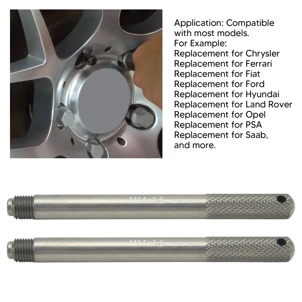 These wheel alignment pins are a lifesaver for tire repairs! The M14 x 1.5 studs fit perfectly on my Ford, keeping the wheel securely aligned while swapping tires. The aluminum alloy construction feels solid—no bending or breaking even with heavy use. Super handy for quick, safe wheel changes. Just double-check your lug bolt size before ordering!