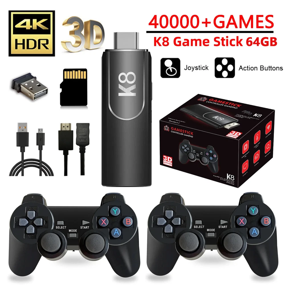 M15 40000+ 4K HDMI TV Video Game Stick Retro Gaming Console 2Wireless Controller