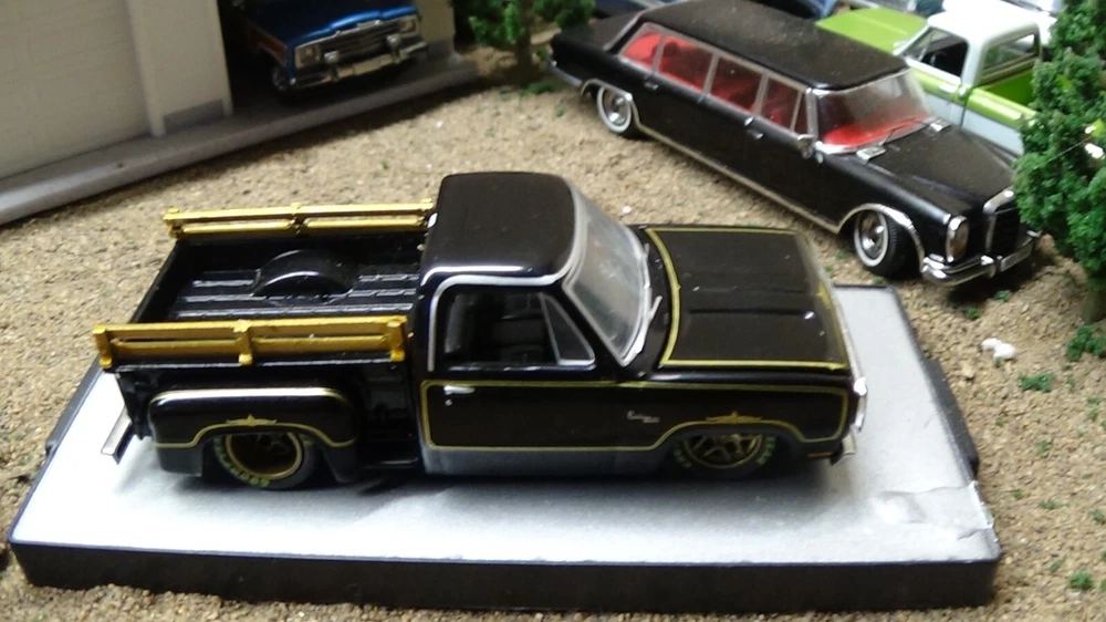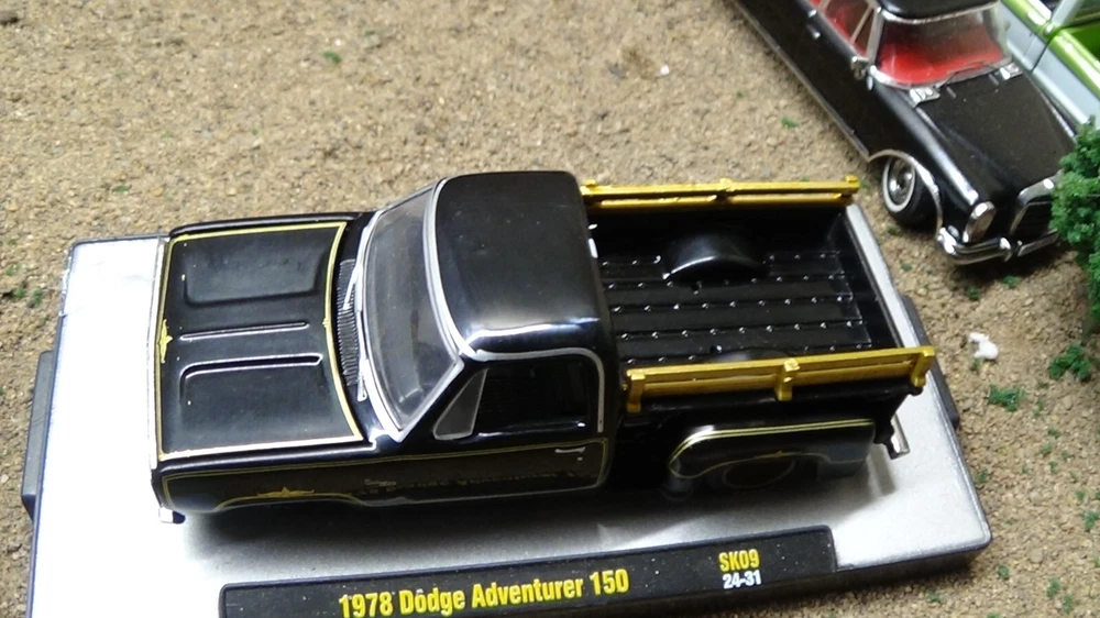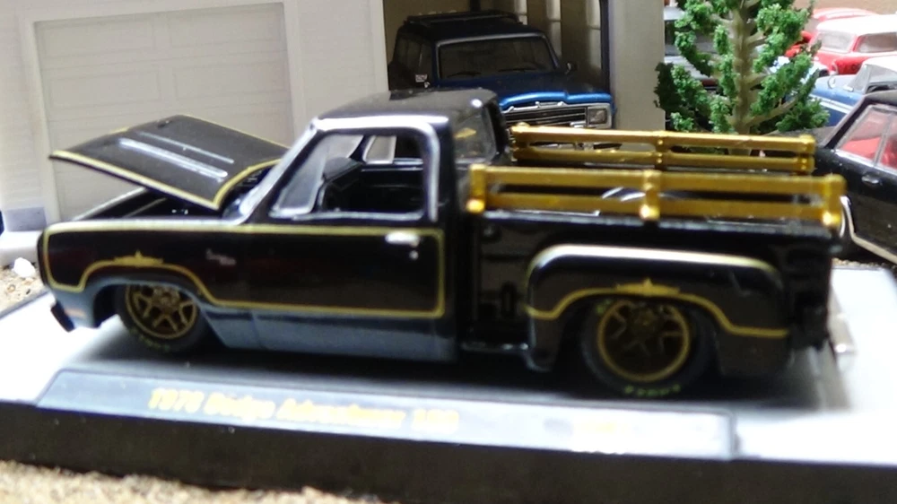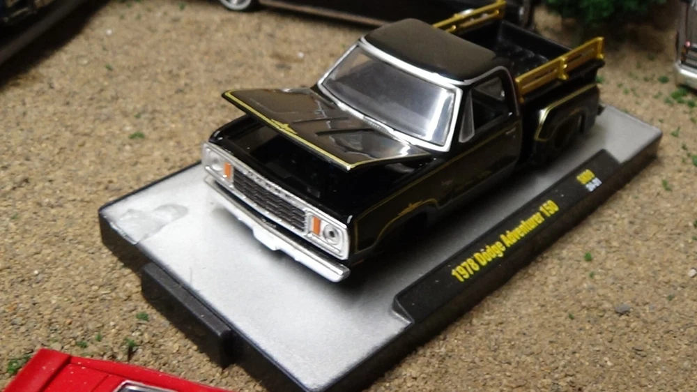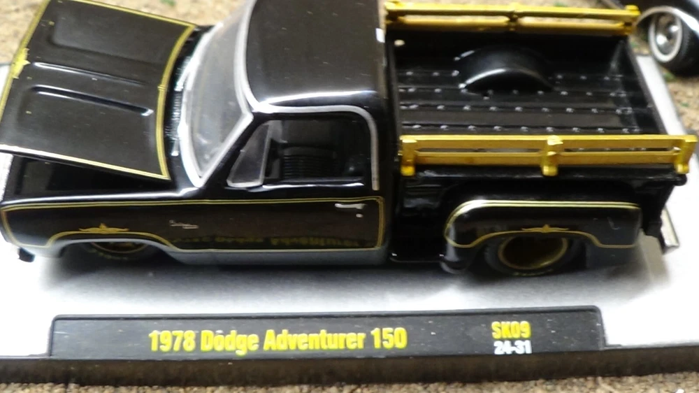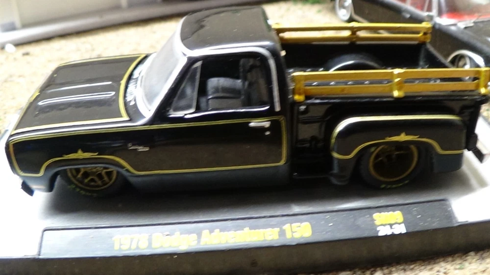 Elevate your collection with the M2 Machines 2024 Custom Lowered 1978 Dodge Warlock, a standout piece that blends classic design with a unique twist. This 1:64 scale diecast model captures the essence of the iconic Dodge Adventurer 150, finished in a sleek black color that complements its rugged aesthetics., Embrace the spirit of individuality with this limited edition model that features a lowered stance, giving it an aggressive edge and a custom look that stands out. With its association to the Cars character family, this M2 Machines truck is not just a collectible but a homage to the golden era of automotive design, perfect for those who appreciate the blend of nostalgia and craftsmanship. This item is new but opened and customized