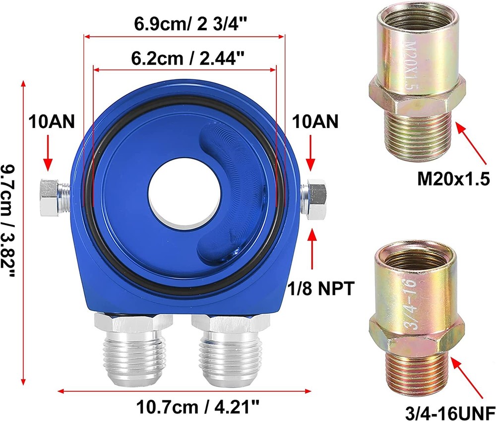 Type: Oil Filter Color: Blue OE/OEM Part Number: Does not apply Thread Type: M20 x 1.5 & 3/4-16 UNF Threading Notes: Car Compatibility Chart For Search Purposes Only Items Included: O-Ring Material: Metal Model: Universal UPC: Does not apply Brand: Autoparts-Accs Finish: Blue Placement on Vehicle: Front Specifics: Additional Items Will Be Require For Your Vehicle Interchange Part Number: Up Grade Oil Cooler Adapter Installation Guide: Not Included; Professional installation is highly recommended Gasket Material: Metal Universal Fitment: Yes Performance Part: Yes Manufacturer Warranty: 3 Months Compatible/Replacement For: Universal, NOT A DIRECT BOLT ON Vintage Part: No Quantity: 1x Adapter Plate / Pictured Hardware Mounting Style: Bolt-On Manufacturer Part Number: Does not apply gtin13: Does not apply Features: Easy Installation