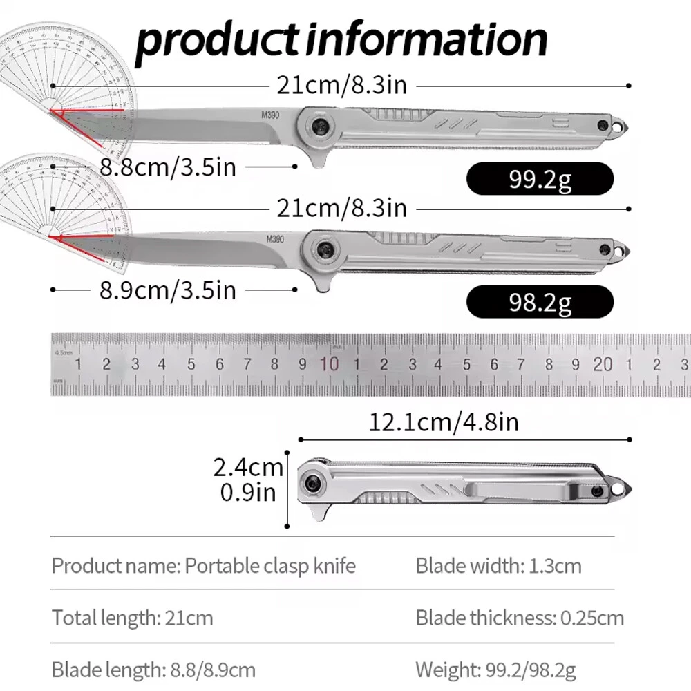 8" EDC M390 Outdoor Tactical Folding Knife Camping Pocket Knife for Hiking BBQ 10.43 USD 10.98 USD Free shipping 5% off 8" Fast Opening M390 Blade EDC Handle Pocket Folding Knife Tactical Knife 10.43 USD 10.98 USD Free shipping 5% off AK 47 Pocket Folding Knife for Camping Hiking Tactical Knife LED Light Gift 16.42 USD 17.28 USD Free shipping 5% off AK47 Blade Folding Blade Knife Combat Pocket Knife Outdoor Camping Survival 12.17 USD 12.81 USD Free shipping 5% off AK47 Gun Shape Outdoor Pocket Tactical Survival Folding Knife with LED Light New 12.17 USD 12.81 USD Free shipping 5% off Tactical Pocket Knife Spring open Assist Knife Folding Knife For Camping Outdoor 9.3 USD 9.79 USD Free shipping 5% off Pocket Knife Folding Tactical Survival Knife Outdoor Camping Hunting Knives 42.55 USD 44.79 USD Free shipping 5% off 9" Classic Italian Style Stiletto Folding Spring Assisted Open Pocket Knife NEW 8.5 USD Free shipping 8.9" TAC FORCE SPRING OPEN ASSISTED TACTICAL FOLDING POCKET KNIFE Rescue Blade 10.24 USD Free shipping 1-3 Packs Folding Knife Tactical Pocket Knife Survival Camping Hunting knives 11.45 USD Free shipping 8.9" TAC FORCE SPRING OPEN ASSISTED TACTICAL FOLDING POCKET KNIFE Rescue Blade 10.24 USD Free shipping 1-3Pack Folding Knife Tactical Pocket Knife Survival Knife Camping Hunting Knife 11.46 USD Free shipping Portable Stainless Steel Knife Fruit Knife Outdoor High Hardness Sharpness 10.2 USD Free shipping Knife Portable Folding Knife Stainless Steel Knife Pocket Knife Sharp Fold Knife 12.7 USD Free shipping Black EDC Assisted LED Multifunction Open Pocket Knife Survival MULTI TOOL Gift 13.74 USD 14.46 USD Free shipping 5% off Tactical Combat Spring EDC Assisted Open Pocket Rescue Knife Led Fitness Hunting 14.98 USD 20.22 USD Free shipping 26% off Product Description THE KNIFE HAVE TWO MODEL,WHEN YOU ORDER MIND WHAT MODEL DO YOU WANT,THAKNS! Description 1. Multi-functional design Users can personalize the configuration according to actual needs. 2. High-quality materials and sturdy and durable -HIGH CARBON STEEL BLADE: Made of stainless steel, high hardness and wear-resistant to ensure that it remains sharp after long time use. -Anti-corrosion treatment: the surface is treated with anti-rust and anti-corrosion treatment, which can effectively prevent rust even in humid environment and prolong the service life. -High-strength grip: made of durable composite material or metal, with good non-slip performance, ensuring a firm grip even with wet hands or gloves. 3. Portability and Compact Design -Lightweight and Portable: The overall weight is light and compact, easy to carry in pocket or backpack without adding extra burden. -Ensure the blade locks securely when deployed to prevent accidental closure and enhance safety. -Lanyard hole: comes with a lanyard hole design, easy to hang on a keychain or wrist, accessible anytime, anywhere. 4. Safety Features -Blade protector: Equipped with a special sheath or protector, it not only protects the blade from external damage, but also prevents accidental cuts. 5. Convenient operation -One-handed opening and closing: supports one-handed quick opening and closing, easy and fast operation, especially in emergencies can quickly deploy the knife. -Easy to clean and maintain: simple structure, easy to disassemble and clean, convenient daily maintenance to ensure the hygiene and performance after a long time of use. Specifications: Product Name: Stainless Steel Folding Knife Size: 8.35 INCH Material: stainless steel Hardness: 58-60hrc Surface: blade vacuum treatment, fine sanding. Handle material: front and back high quality titanium handle ct-4. Knife clip: blue titanium back clip Lock type: side opening. Screw: 420 stainless steel, hardness hrc45, CNC precision machining Structure: wire lock structure, built-in plane bearing gasket. Length: 21cm Blade length: 9.0CM Stem length: 11.3cm Blade width: 1.3cm Blade thickness: 2.5mm Blade material: M390(NC grinding of blade) Knife weight:100g Gross weight 110g Package: 1* folding knife NOTE: All dimensional data are measured by hand, please understand if there is any error. Payment Returns Contact Us Shipping Feedback 1. We only accept eBay payments. 2. All payments must be made within 3 days after auction won. Item may be returned for refund or replacement within 30 days of the purchase date. Returned merchandise must be unused, in original packaging and include all accessories. Shipping costs are non-refundable. Please do not hesitate to leave us your 5 Star ★★★★★ of DSR positive feedback if you are satisfaction with our products ,delivery or services . If you have Any Questions Or Unsatisfied with your purchase, please Email us firstly to get a better solution before you leave a neutral or negative feedback, we work hard to make sure every customer 100% satisfied and resolve anyproblem for you. Please email us first in the following situations: 1.The item can't work properly. 2.The item broken on the post. 3.You bought or received the wrong items. 4.You have not received your shipment within the period. 5.Before you give us Negative feedback. 6.Before you open a case/return on eBay. All questions will be replied within 24 hours (Except Saturday and Sunday or holidays). Thank you for your kindness! 1. eBay Payments Confirmed Addresses Only. 2. No Delivery to Alaska and Hawaii or PR. 3. No P.O. Box and APO/FPO Delivery. 4. Tracking Number will be provided. 5. Domestic shipping is within the 48 Contiguous States of United States, the delivery time is between 2 and 8 days. Items will be shipped by UPS, USPS or Fedex within 3 business day after receiving full payment. 6. International shipping is from China, the delivery time is between 10 and 30 working days. As a seller , Positive Feedback is very important to us. We try our best to let our customers to be happy. If you have any question about your order, please contact us ,please let us know before you Leave the Negative feedback ,We are will