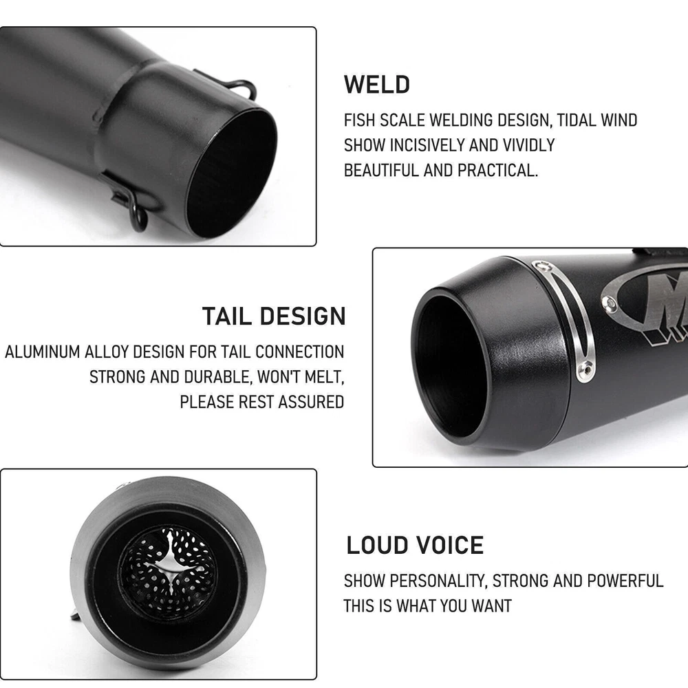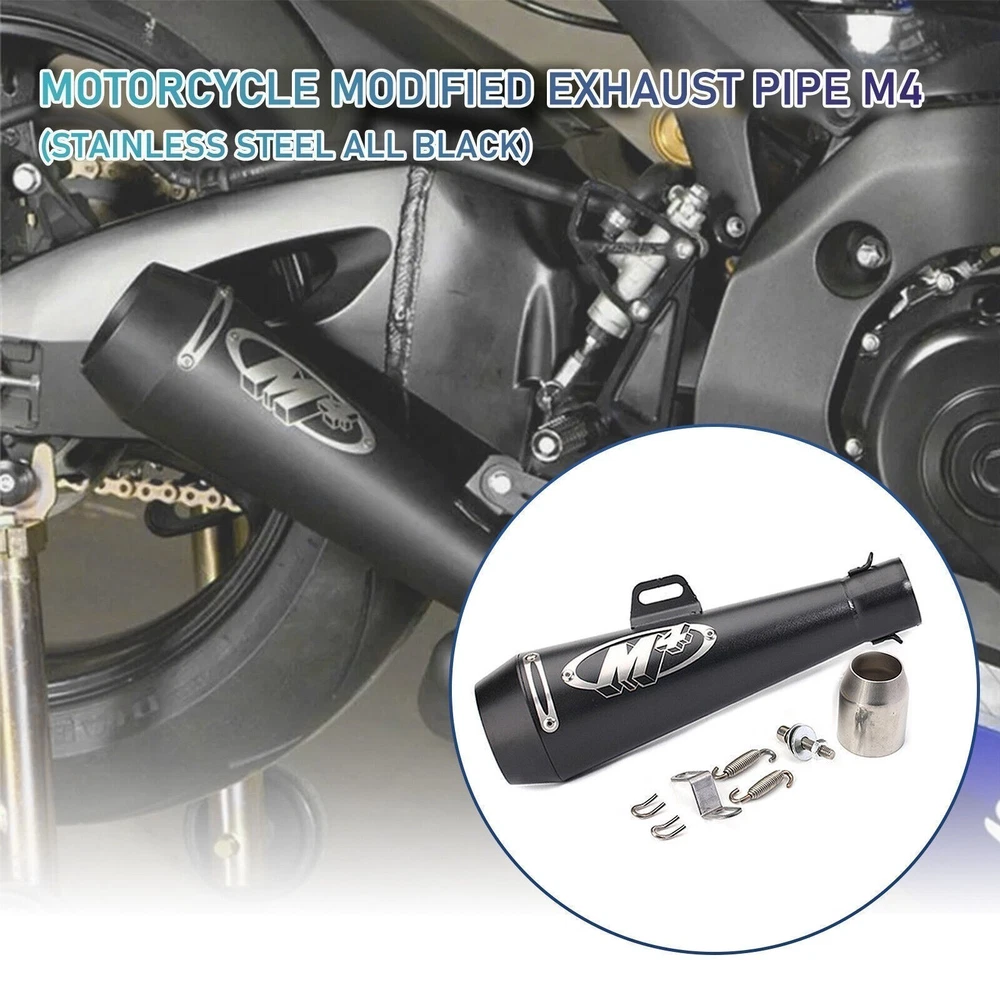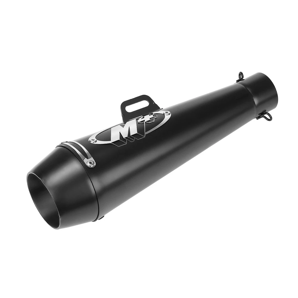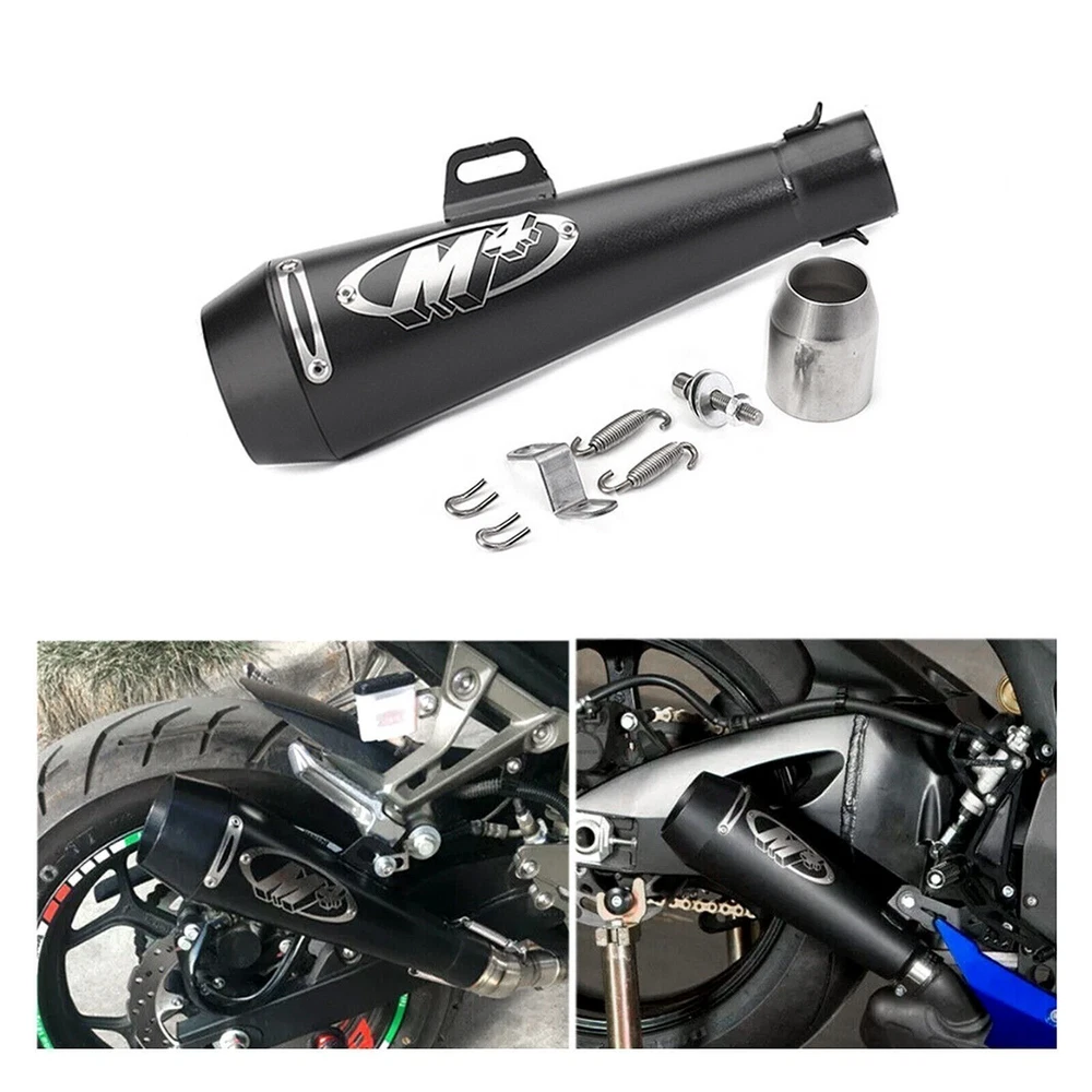 Description: Premium stainless steel construction, added high-temperature coating process, durable, high temperature resistant and anti-corrosion, superior longevity. Make your motorcycle roar with outstanding sound, increase your racing style. Classic black color, elegant and generous, an add-on decoration to dress up your motorcycle. Welding bracket included, easy to install. Helps your motorcycle obtain maximum output, ensuring its top exhaust performance. Universal fits for most motorcycles, ATV and scooters with 38-51mm diameter exhaust pipes. Specifications: Material: stainless steel Color: black Size: shown as picture Installation location: Right Fitment: For most motorcycles, ATV and scooters with 38-51mm diameter exhaust pipes Notes: 1. It is easy to install, but professional installation is always recommended. 2. Please allow 0.2 inch error due to manual measurement, thanks for your understanding. 3. Certain models(Yamaha R6/Suzuli GSXR...) must add the middle section first, cannot use this exhaust pipe directly. (middle section IS NOT INCLUDED in the package). Package: 1x Exhaust Muffler Pipe 1x Adapter 1x Set of Mounting Accessories