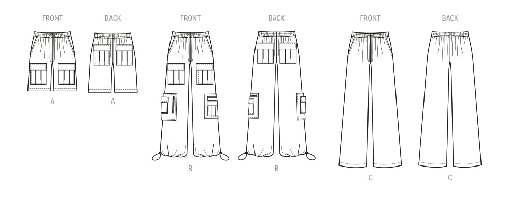 sewing pattern kits come with pattern pieces for cutting out the fabric, step by step written and illustrated instructions to guide you through the sewing process, and information on how to select fabric and trims plus sizing information These clothing sewing patterns for men and misses can be made to fit sizes XS-S-M-L-XL-XXL Misses' and men's wide leg cargo pants and shorts have elastic and drawstring waist and pocket variations; view B has an elastic cord at hem From costumes to complete outfits, pattern line offers vintage and modern inspirations on classic pieces that turn any wardrobe into a designer's collection complete with personalized pieces you'll love to wear pattern are proudly designed and manufactured in the United States