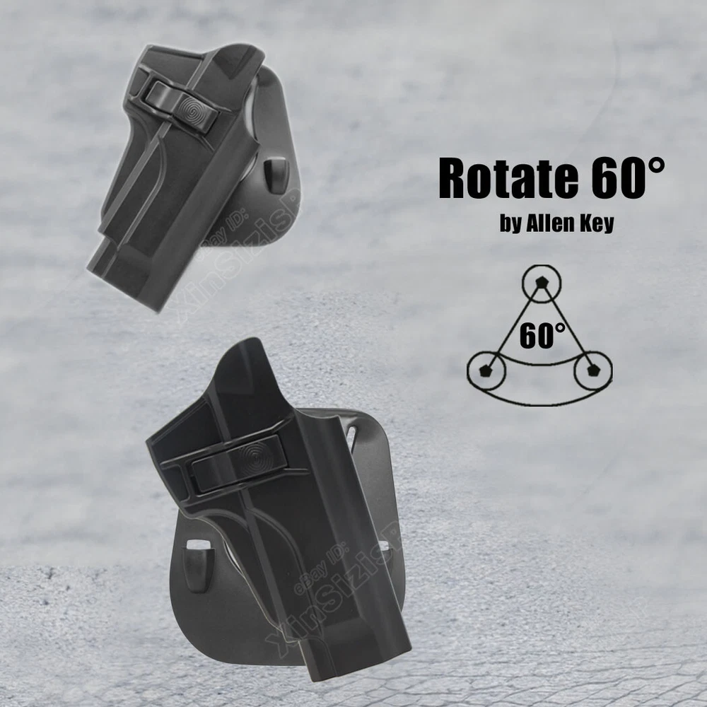 High Quality Military & Police Grade Polymer OWB Holster Specially Designed For Fast Draw During Duty Or Shooting Competition. Item Description: Tactical Outside Waistband Holster for. Holster fit Beretta Beretta 92 9mm Luger Beretta 92FS 4.9” 9mm Luger Beretta 92FS Inox 4.9” 9mm Luger Beretta M9 4.9” 9mm Luger Beretta M9_22 .22 LR Beretta Compact 92S Full Size 9mm Luger Beretta Compact 92S Centurion 9mm Luger Beretta 92G ELITE LTT 9mm Luger Holster fit Taurus PT92 9mm Luger Does not fit: Taurus PT92 AF-D / AF-S (due to the rail being blocked). Beretta 92FS Brigadier / Brigadier Inox / Compact / Compact Inox, 92A1, 96A1, M9A1, M9A3, M9A4, M9A1_22. (It perfect fit the gun with Optic Mount Mini Sight above on the end of the barrel, But without laser and no embedded chassis, and no flashlight style ) Materials & Durable Made of durable high-tech polymer materials - Stronger than leather will wear out, the polymer holster will not wear out and get flimsy.Adapt to every environment High S afety I ndex-finger release for quick release button (Level II retention) An audible click lock system ensures knowing when your weapon is securely holstered A djustable E asily set your paddle /belt cant 0-60 degrees according to your preference with the Allen key Ease And Comfort Easy on / Easy off- No need to undo your belt every time you wear your holster.Sweat-proof- Protect your weapon from salty perspiration and not absorb sweat. In the Package: · 1*Holster with Paddle Attachment · 1*Allen Key Shipping: Ships same day or next except Sundays and Holidays ! Free shipping! Ship by USPS First Class Package. 100% MONEY BACK GUARANTEE. Any question please be free to contact with us .Thanks!