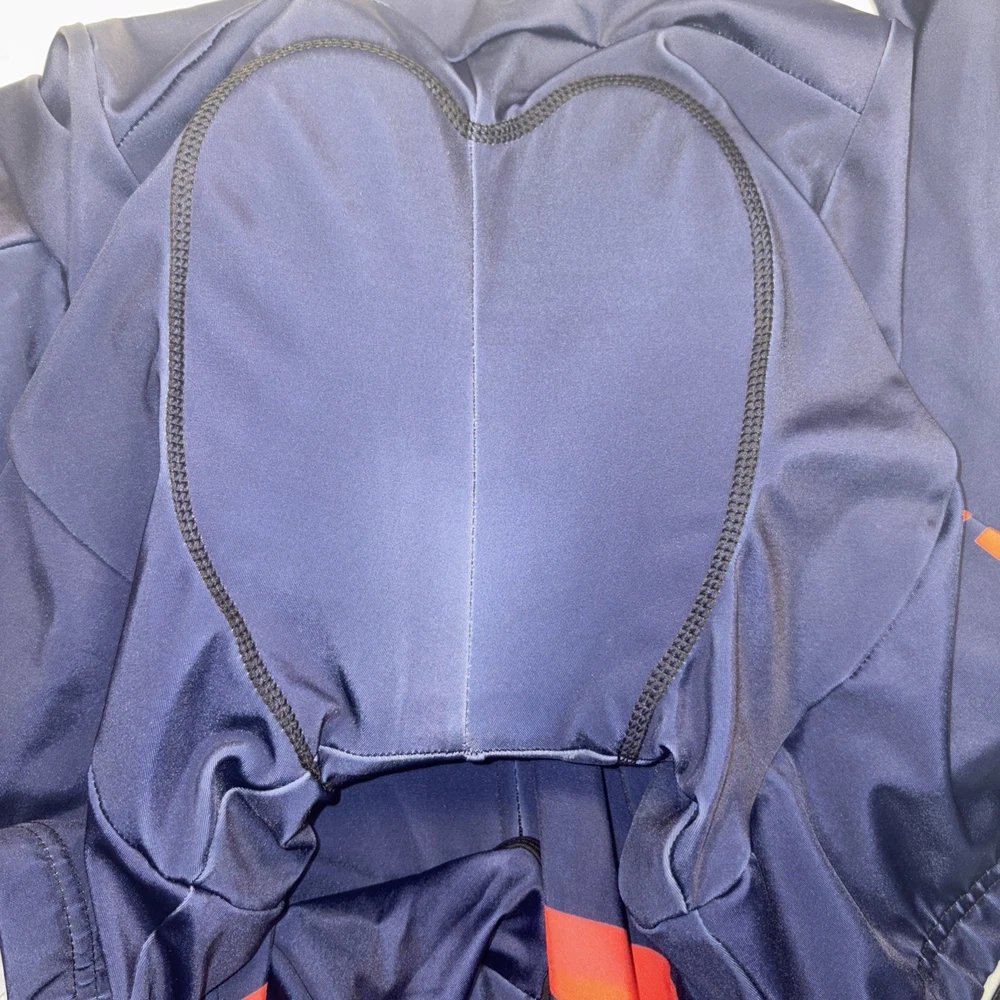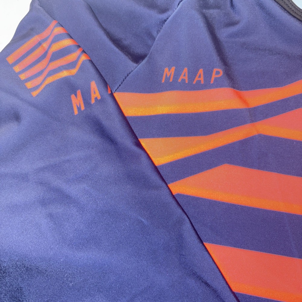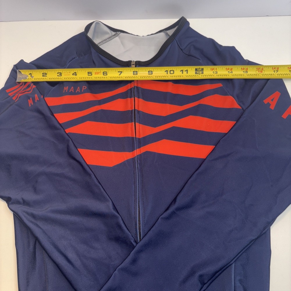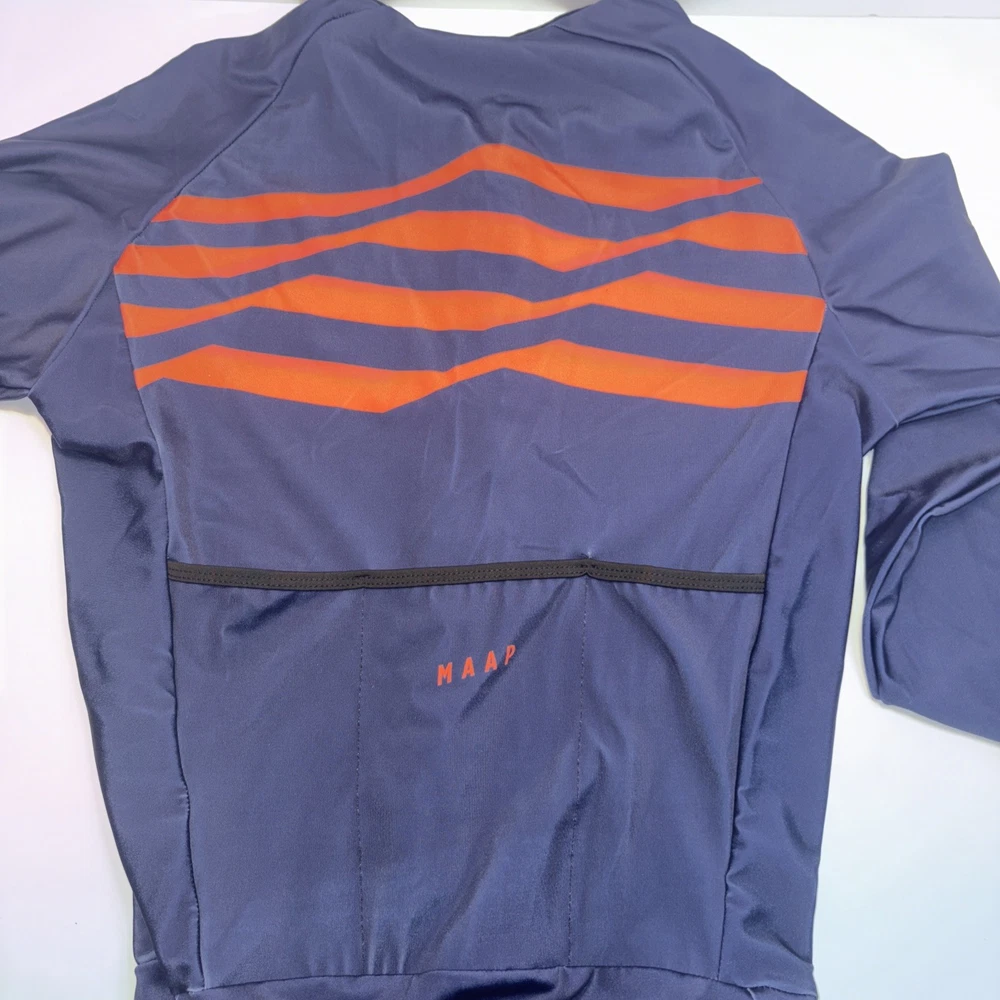 The MAAP Navy Long Sleeve Padded Suit is designed for adult men who enjoy cycling. The suit is made of a polyester blended fabric and features a navy and red color with the MAAP brand name. It has a compression style and is suitable for athletic fit. The suit is perfect for all seasons, including winter, summer, fall, and spring. It has a padded feature, making it comfortable for cycling. The closure is a pull-on style, and it is suitable for activewear occasions. The suit is categorized under Sporting Goods, Cycling, Cycling Clothing, and Shorts. Great overall condition, some color wear in bottom area. Great weather coming up get ready to get on the bike and cycle. BB24410