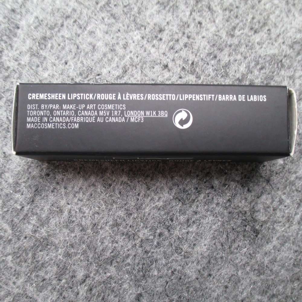 MAC Cremesheen Lipstick Beach Sand 3g 0.1oz Condition: Brand New in Box, never opened or used Cremesheen lipstick offers a creamy, moisturizing finish for smooth application Shade: Beach Sand Net Weight: 3g / 0.1 US oz Ingredients include shea butter, soy seed extract, olive fruit extract, wheat bran, candelilla wax, vanillin, and various pigments Packaging displays MAC branding and essential label details Made in Canada Distributed by Make-Up Art Cosmetics, Toronto, Ontario, Canada and London, UK UPC: 773602260577 Perfect for everyday wear, adding natural, hydrating color