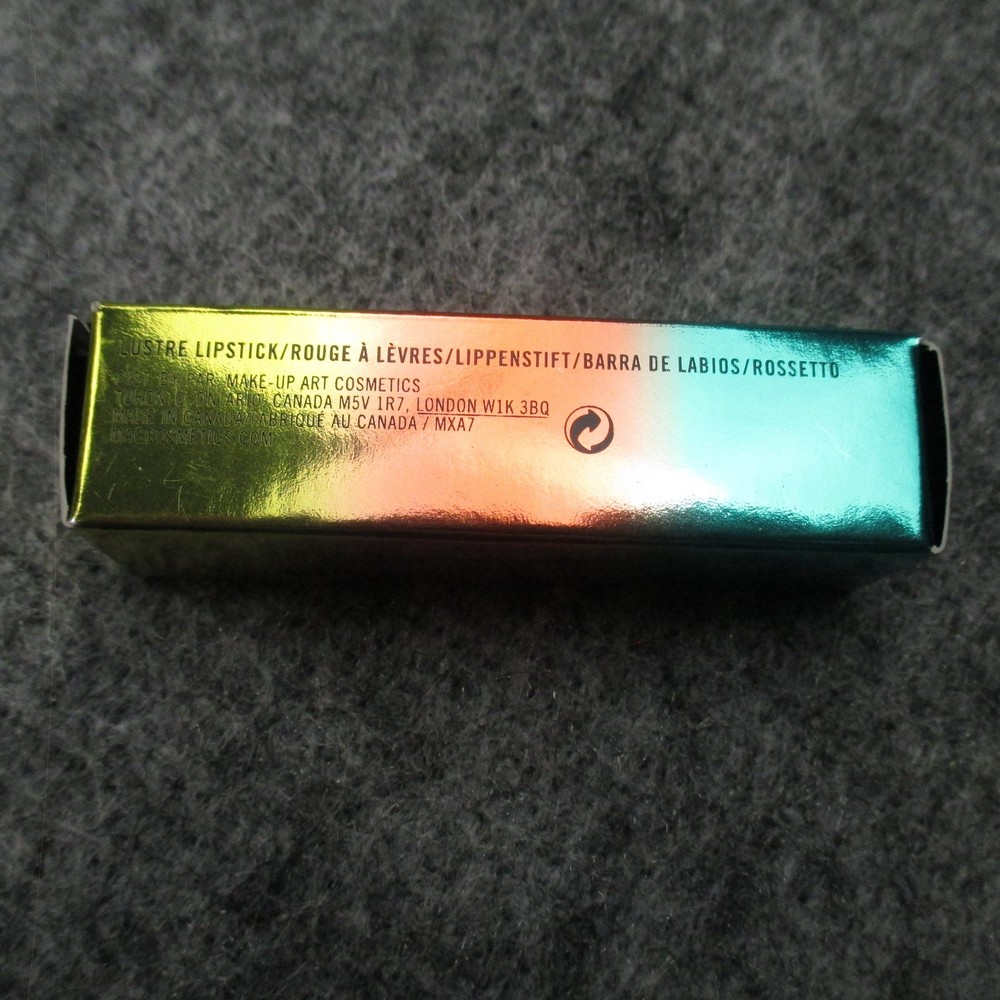 MAC Lustre Lipstick in shade Tumble Dry 3g (0.1 oz) Condition: Brand New in box, never opened or used Limited edition metallic gradient packaging Shade: Tumble Dry Finish: Lustre - sheer, hydrating finish with luminous shine Net weight: 3g / 0.1 US oz Ingredients listed on box: includes castor seed oil, shea butter, candelilla wax, tocopheryl acetate, and various colorants Manufactured by Make-Up Art Cosmetics Made in Canada Barcode: 773602366149, Style Code: MXA78X Multi-language box text including French, German, Spanish, Italian Special features: collectable packaging, discontinued shade Great for everyday use or gifting