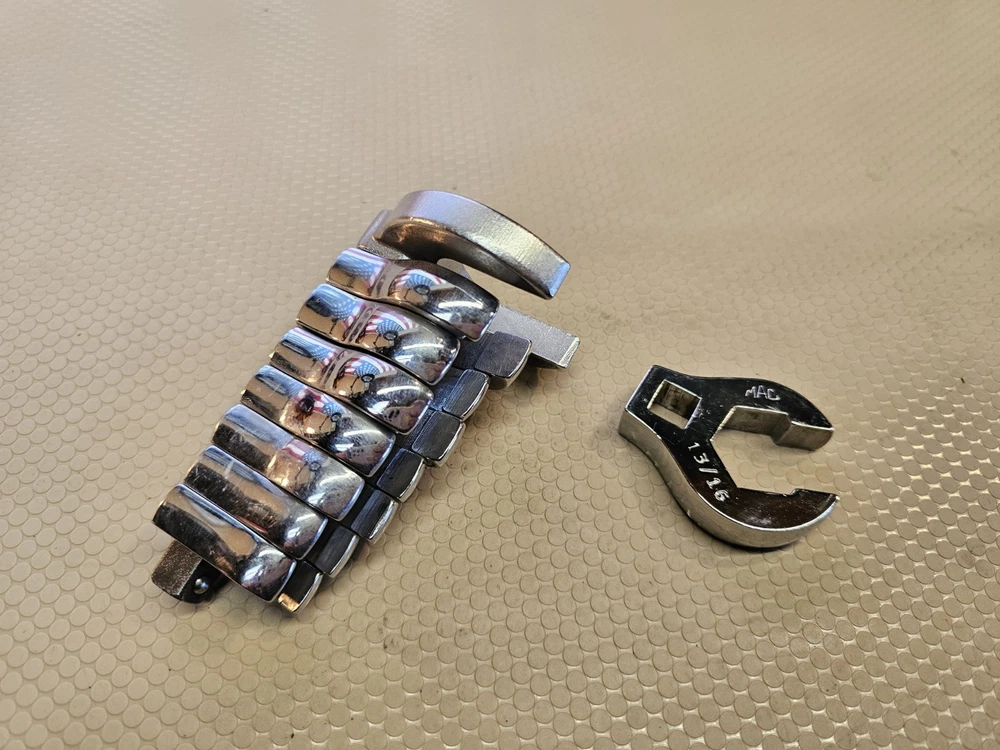 Drive Type:6 PointManufacturer Part Number:SCHB8PTBrand:Mac ToolsSize:3/8" to 13/16"Set or Single Item:SetSystem of Measurement:SAENumber of Pieces:8Type:Crowfoot Wrench Set