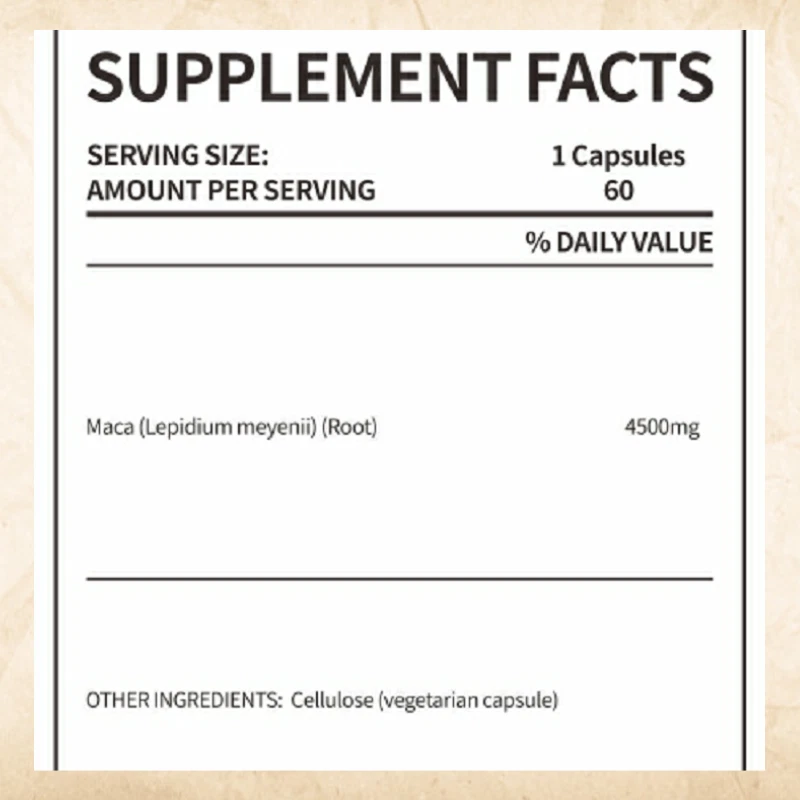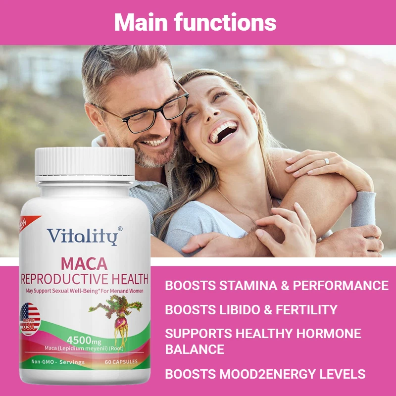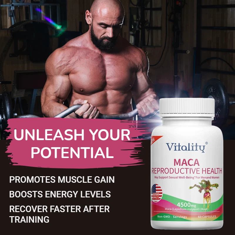 Features: All Natural, GMO-Free Main Purpose: Men's Health, Muscle Health, PROMOTES MUSCLE GAIN, BOOSTS ENERGY LEVELS, RECOVER FASTER AFTER TRAINING FDA Registration Number: 18077295920 Department: Adult, Unisex Shelf Life: 2 years Production Date: 01/2024 Dosage: 4500mg UPC: Does not apply Formulation: Capsule Active Ingredients: Maca Storage: Keep in a cool, dry place and please sealing Brand: Vitality Number of Pills: 60 Ingredients: Maca Flavor: Unflavored gtin13: Does not apply When to Take: After Meal