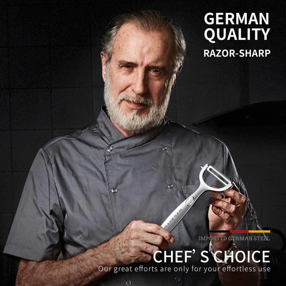 MAD SHARK Ultra Sharp vegetable peelers for kitchen – 10 Years No-Rust Stainless Features: EXTRA SHARP POTATOES PEELER: This best Kitchen peeler is crafted with serrated Swivelling blades that effortlessly contour to the curves of fruits and vegetables, peeling ultra-thin layers to reduce food waste. Say goodbye to stuck peels and hello to fast, hassle-free meal prep with the Y-shaped Peeler designed for effortless, precise peeling every time ERGONOMIC COMFORT GRIP PEELER: Designed with a longer, anti-slip handle, this peeler ensures a secure, comfortable grip for all hand sizes, perfect for both left and right-handed users. This safe peeler Ideal for peeling fruits, vegetables, hard cheeses, and more, it reduces strain on your hands, making it especially beneficial for those with arthritis or weakened grip strength NO-CLOG PEELER: Crafted with smooth glide technology, this easy to use peeler ensures smooth, effortless peeling without clogging. Its ultra-sharp blade preserves the nutrients of fruits and vegetables, making it perfect for peeling potatoes, carrots, cucumbers, apples, tomatoes, and more TOP GRADE HIGH-QUALITY MATERIAL: This rust-free potato peeler features a premium 304 stainless-steel blade that stays ultra-sharp, ensuring effortless peeling every time. Built to last, this durable peeler can withstand extensive use without dulling, breaking, or discoloring, providing reliable performance for all your kitchen peeling needs EASY TO CLEAN: Featuring an upgraded rust-free carbon steel blade and a zinc alloy body with a streamlined design, this easy to clean peeler is dishwasher safe and easy cleanup, ensuring effortless maintenance and long-lasting performance Features: EXTRA SHARP POTATOES PEELER: This best Kitchen peeler is crafted with serrated Swivelling blades that effortlessly contour to the curves of fruits and vegetables, peeling ultra-thin layers to reduce food waste. Say goodbye to stuck peels and hello to fast, hassle-free meal prep with the Y-shaped Peeler designed for effortless, precise peeling every time ERGONOMIC COMFORT GRIP PEELER: Designed with a longer, anti-slip handle, this peeler ensures a secure, comfortable grip for all hand sizes, perfect for both left and right-handed users. This safe peeler Ideal for peeling fruits, vegetables, hard cheeses, and more, it reduces strain on your hands, making it especially beneficial for those with arthritis or weakened grip strength NO-CLOG PEELER: Crafted with smooth glide technology, this easy to use peeler ensures smooth, effortless peeling without clogging. Its ultra-sharp blade preserves the nutrients of fruits and vegetables, making it perfect for peeling potatoes, carrots, cucumbers, apples, tomatoes, and more TOP GRADE HIGH-QUALITY MATERIAL: This rust-free potato peeler features a premium 304 stainless-steel blade that stays ultra-sharp, ensuring effortless peeling every time. Built to last, this durable peeler can withstand extensive use without dulling, breaking, or discoloring, providing reliable performance for all your kitchen peeling needs EASY TO CLEAN: Featuring an upgraded rust-free carbon steel blade and a zinc alloy body with a streamlined design, this easy to clean peeler is dishwasher safe and easy cleanup, ensuring effortless maintenance and long-lasting performance eBay integration by