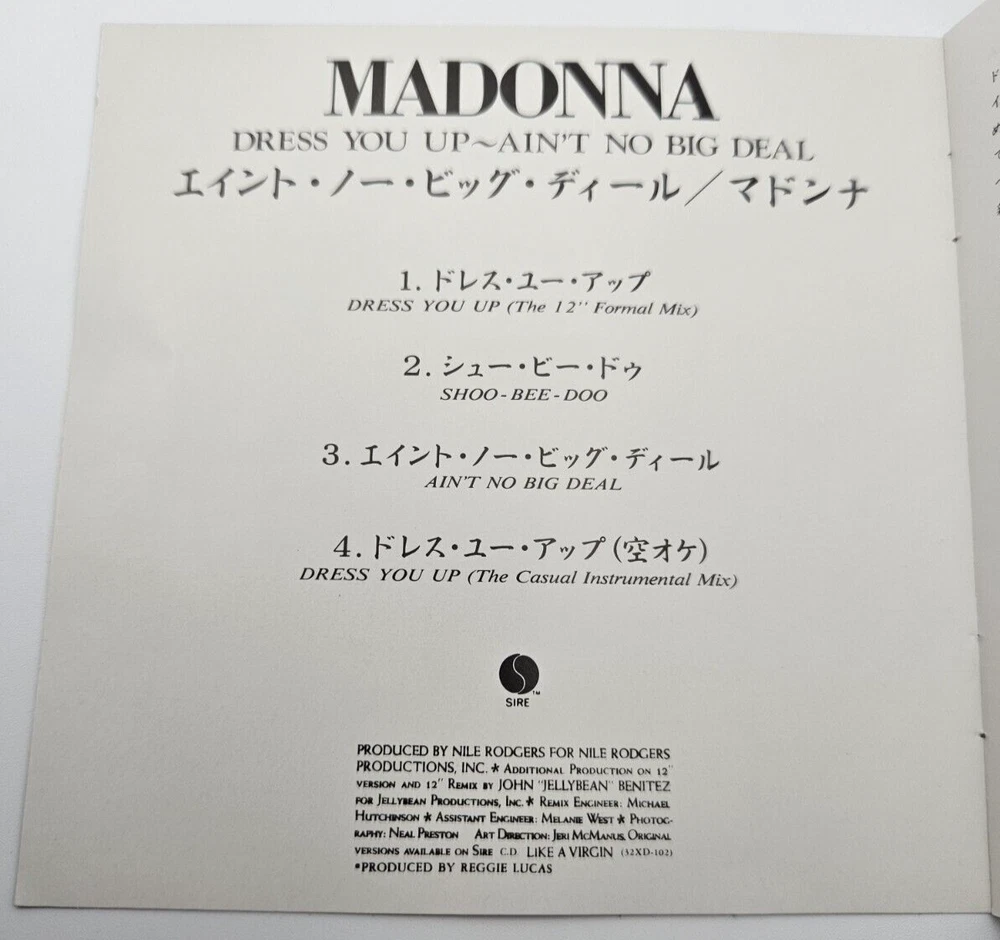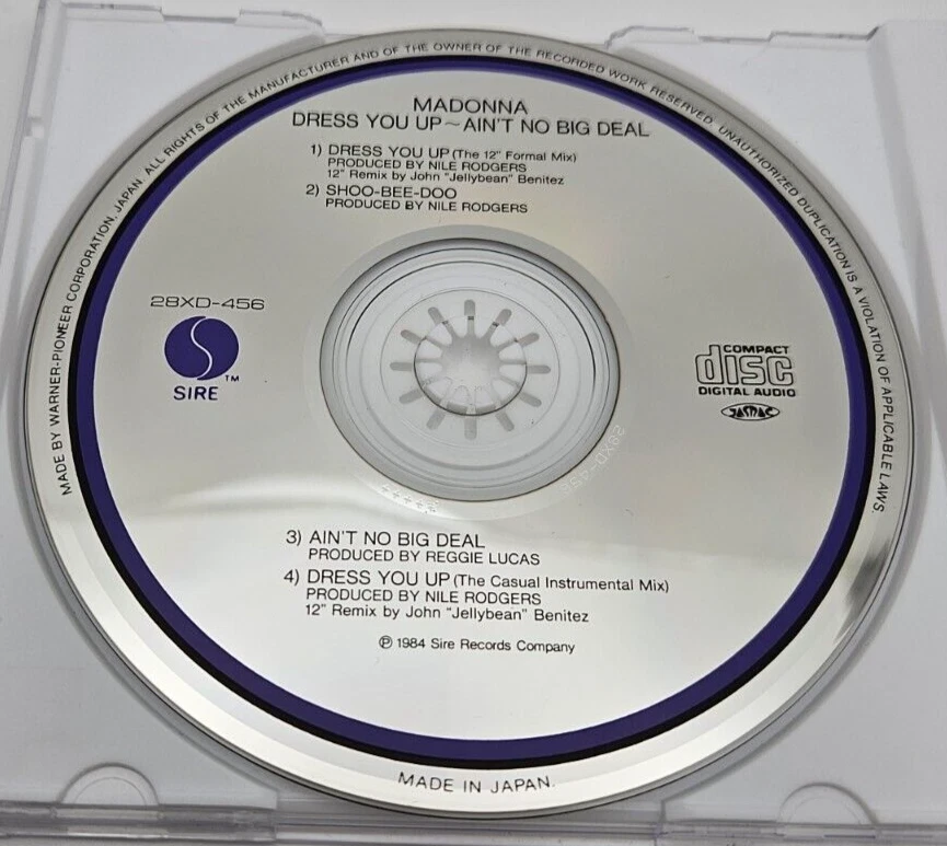 MADONNA Dress You Up JAPAN Only Maxi Single Rare CD 28XD-456 w/Sticker OBI 1986 Description Grade: Excellent Appearance of the item Beautiful as photos. Some the sign of use as photos. Please check on the photos for detailed condition of the product. Functional Tested. Work properly. If you have any question or concern, please do not hesitate to contact me. Thank you for visiting. Please Note for International Buyers We ship items from Japan. Import duties, taxes (example VAT, GST), and charges are not included in the item price or shipping cost. These charges are the buyer's responsibility. Please check in advance about those additional costs in your customs office before buying. Generally, those additional costs will be charged by the carrier when you receive the item. We write the customs declaration correctly. No undervalue. No checkmark gift. Click here and go to my listings!