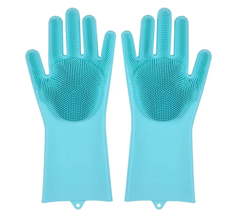 MAGIC SILICONE RUBBER DISH WASHING GLOVES KITCHEN PET BATH CLEANING