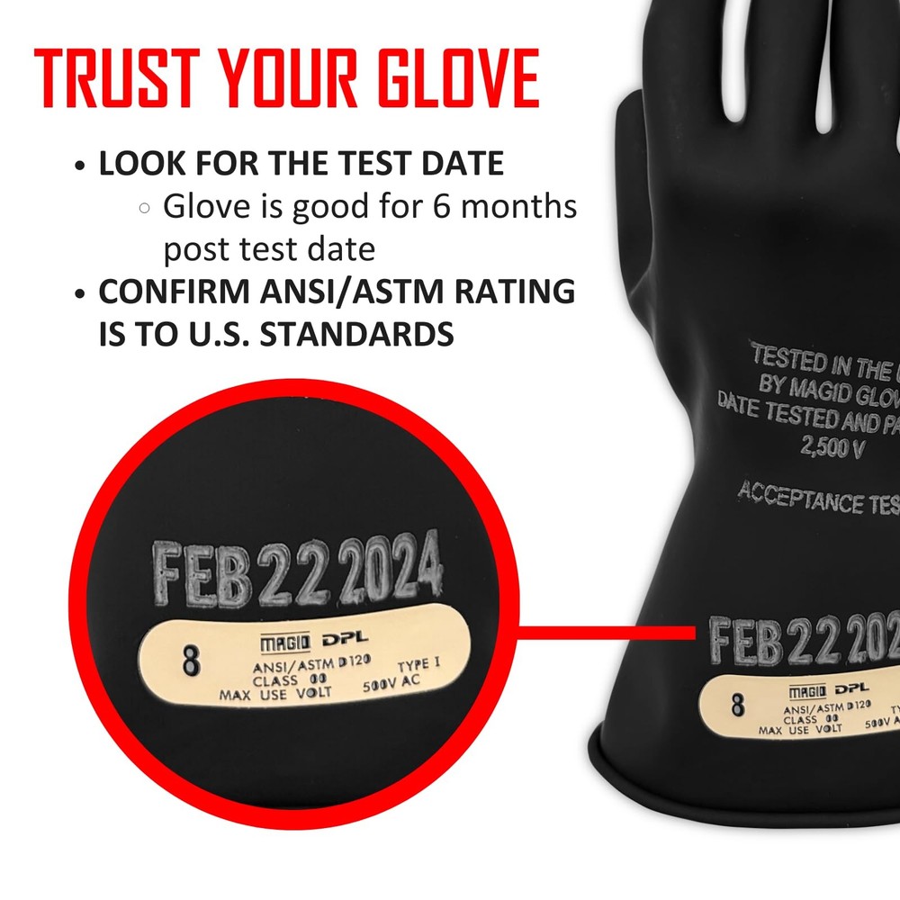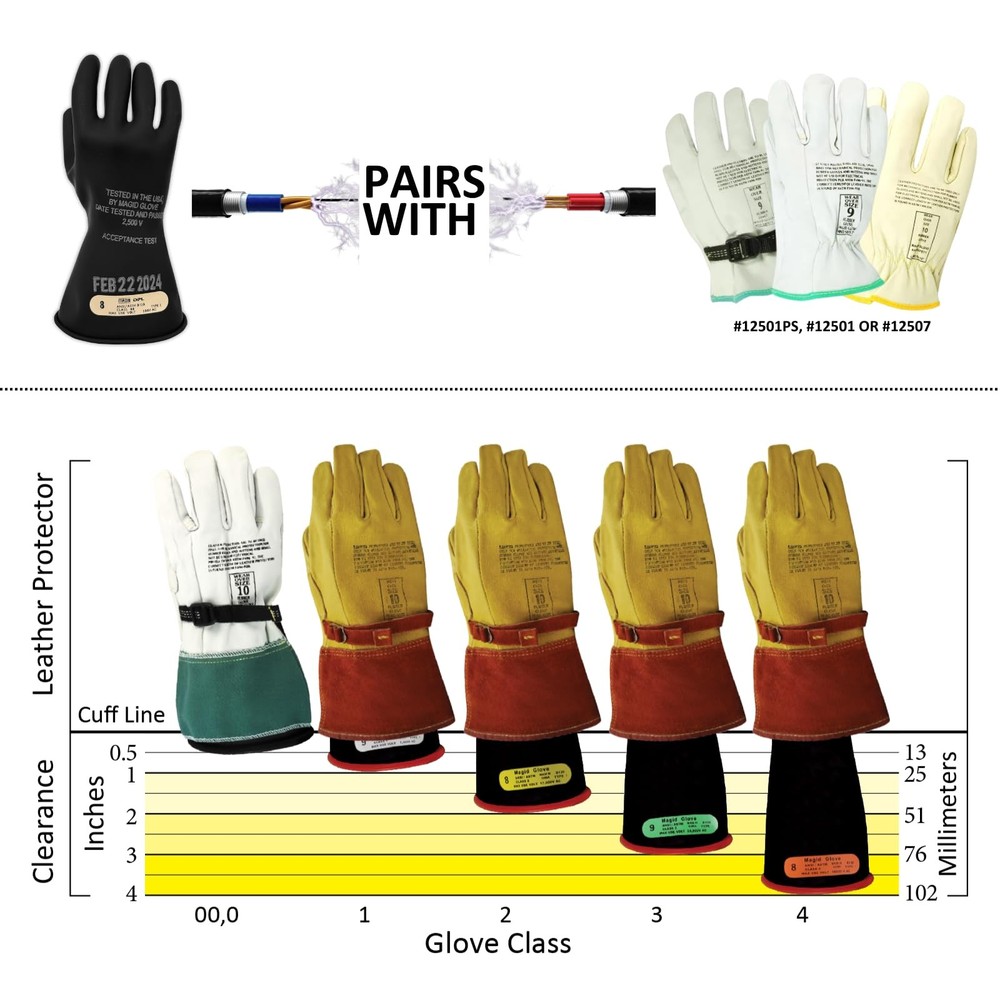 MAGID Insulating Electrical Gloves, Size 9, Class 00 | Cuff Length - 11,