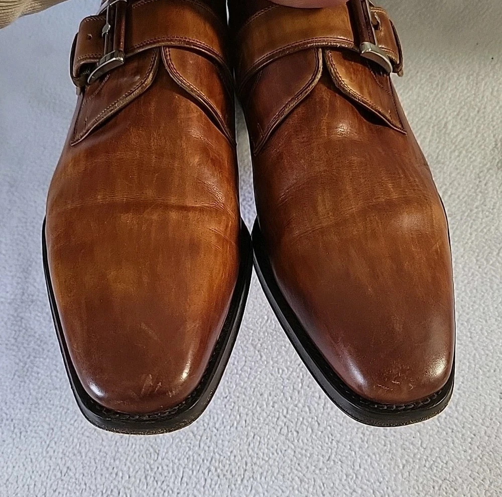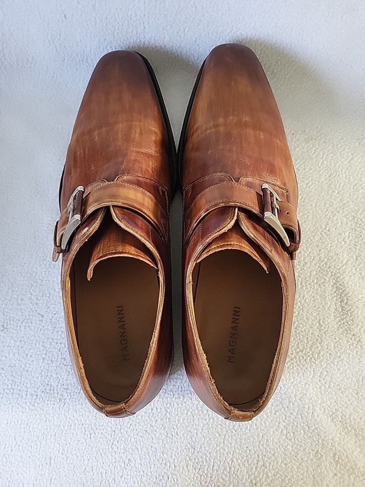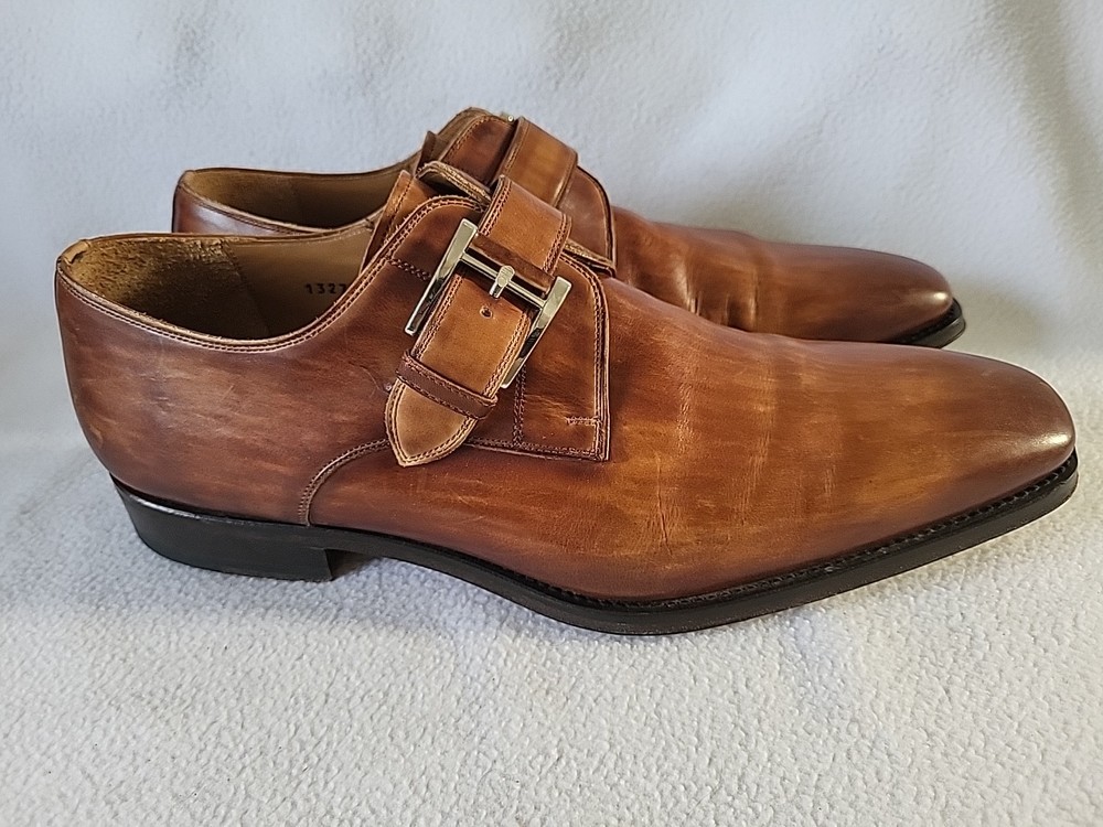 Country of Origin: Spain Brand: Magnanni Lining Material: Leather Season: Fall, Spring, Summer, Winter Toe Shape: Pointed Toe Vintage: No gtin13: Does not apply Model: MARCO Upper Material: Leather Closure: Buckle Style: Monk Strap UPC: Does not apply Insole Material: Leather Color: Brown Outsole Material: Leather Features: Adjustable Strap, Buckle, Cushioned, Lined US Shoe Size: 9 Shoe Width: M Department: Men Type: Dress
