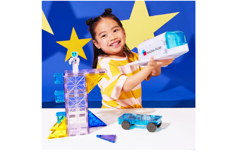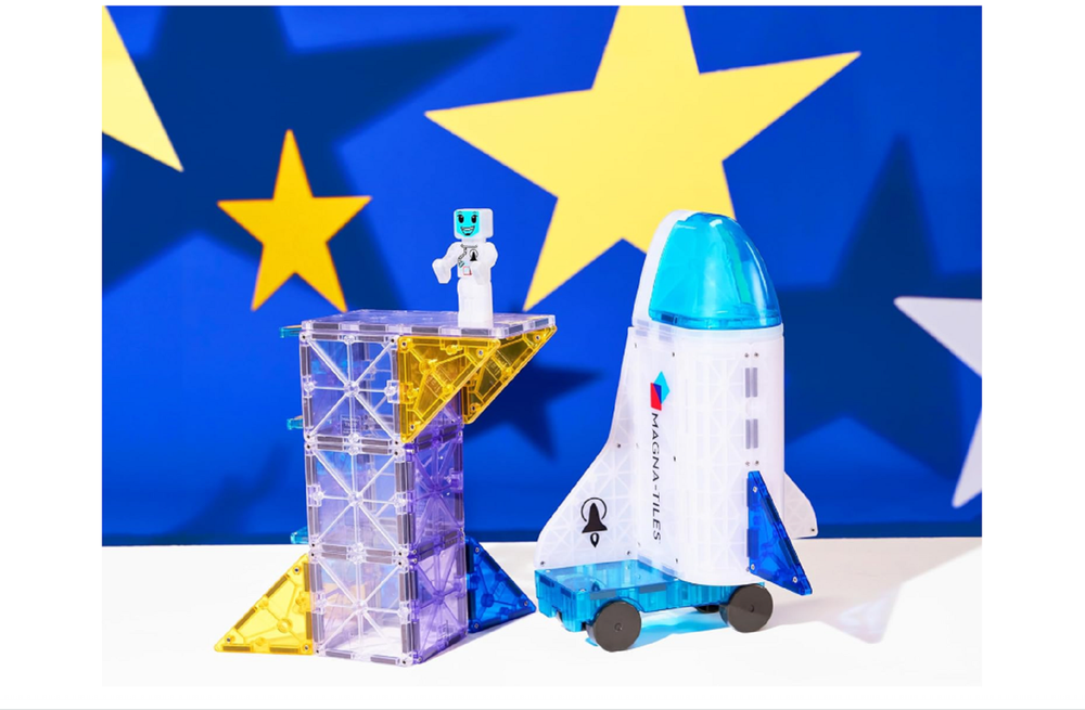 Blast off into cosmic creativity with the MAGNA-TILES Space - 32 pieces! Featuring a first-of-its-kind Space Shuttle with built-in storage, this STEAM-focused set sparks interstellar imaginations and introduces limitless ways to play. Future astronauts can explore the wonders of space while developing essential skills through hands-on building and storytelling. WHAT’S INCLUDED: This 32-piece set includes 1 Space Shuttle, 1 Space Capsule, 1 Capsule Window, 1 Space Figure, 1 Wheeled Chassis, 1 large rectangle, 6 microMAGS squares, 8 right triangles, and 12 squares. UNIQUE FEATURES: Includes a Space Shuttle with built-in storage for all Space set pieces, making it perfect for organized, out-of-this-world fun. SUPPORTS DEVELOPMENT: Encourages exploration of cause and effect, logic, hand-eye coordination, and fine motor skills while inspiring creativity through space-themed play. COMPATIBLE WITH ALL MAGNA-TILES: Fully integrates with all MAGNA-TILES sets, including Metropolis, Downhill Duo, and Classic sets, for limitless expansion opportunities. SAFE AND DURABLE: Made from food-grade, non-toxic MABS plastic with a secure lattice design and fastening rivets, ensuring long-lasting, safe play.