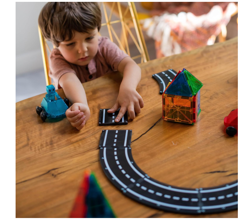 My little one loves expanding their MAGNA-TILES creations with these road pieces! The curved and square tracks add so much fun to their builds—cars zoom around for hours. The magnets are strong, and the pieces fit perfectly with our existing set. Great for sparking creativity and endless playtime. Highly recommend for any young builder!