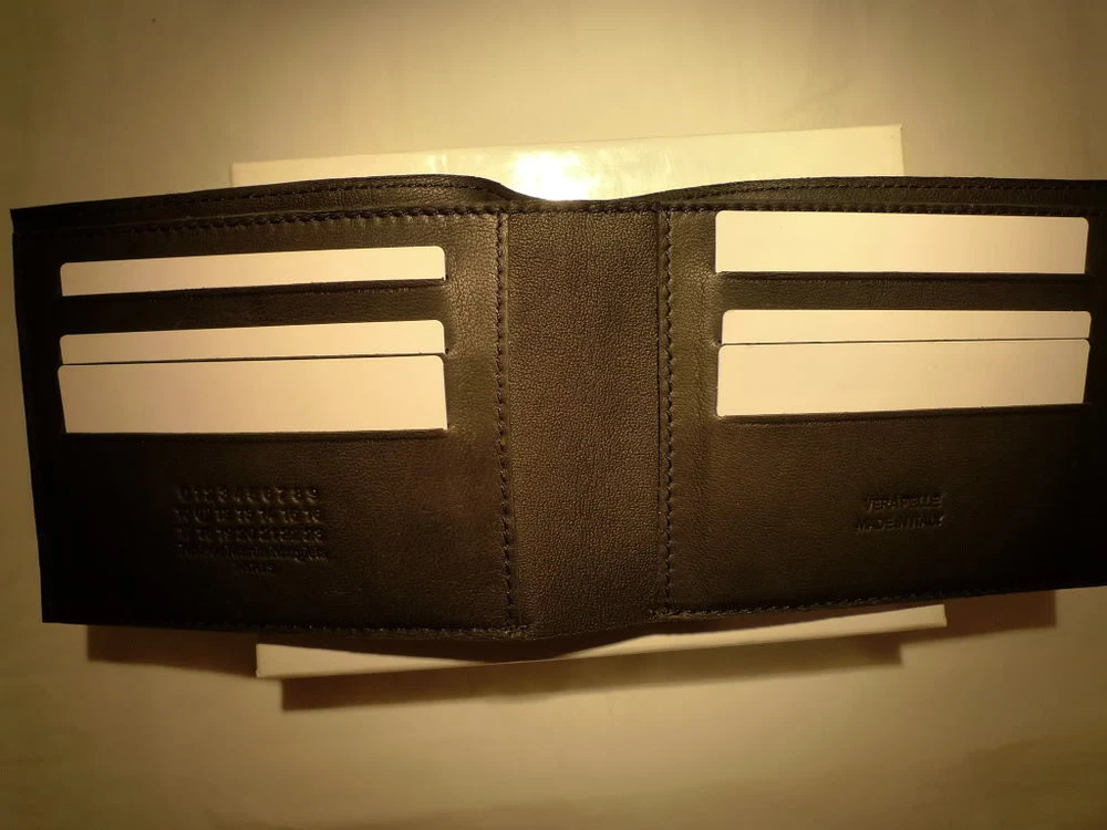 Pattern: Solid Material: Leather Type: Bifold Wallet Department: Men Features: Folding Gift Box: ORIGINAL BOX Country/Region of Manufacture: Italy Color: Black Country of Manufacture: Italy Vintage: No Fabric Type: leather Style: Bifold Brand: MAISON MARTIN MARGIELA