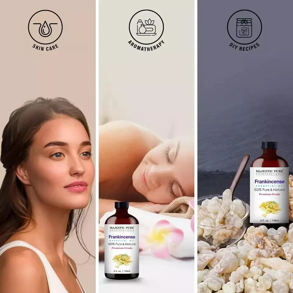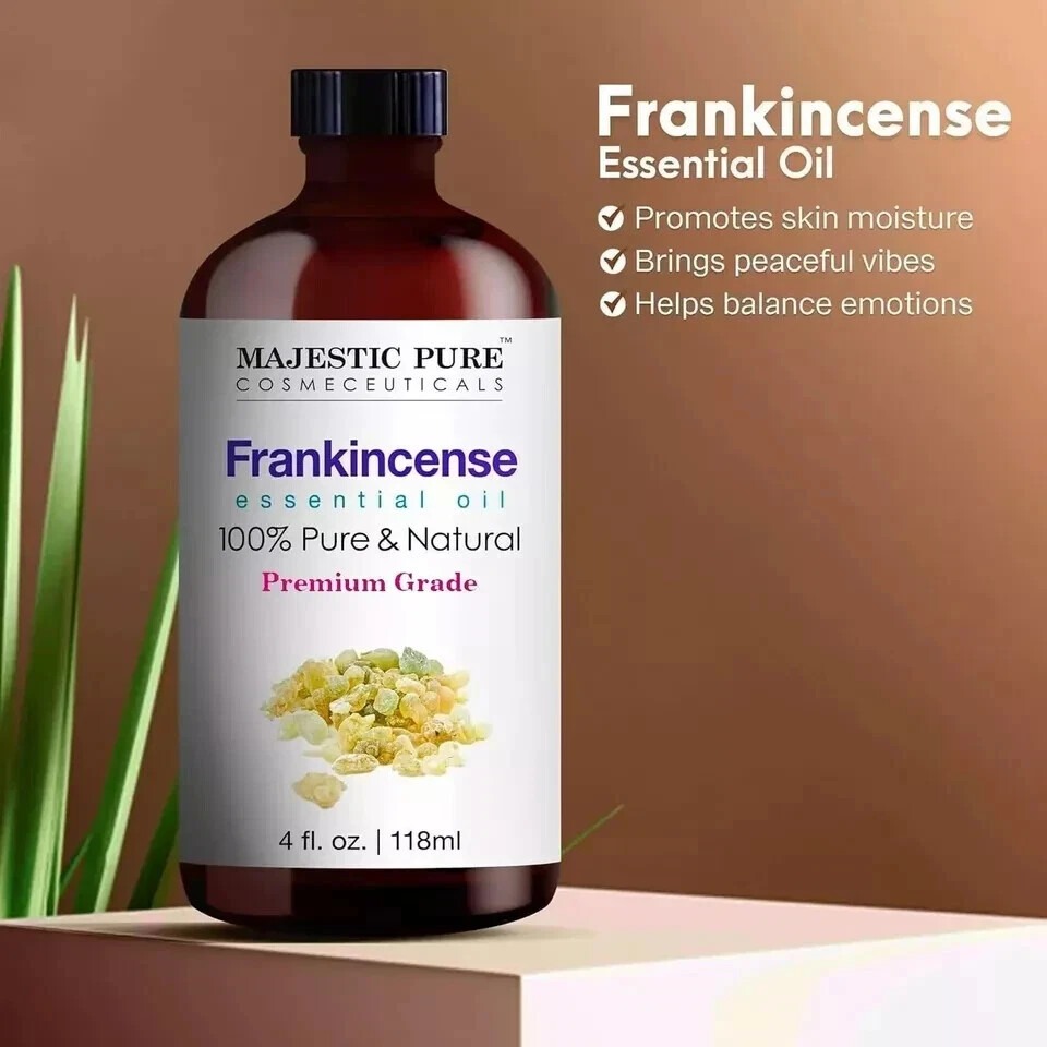 100% Pure and Natural: Majestic Pure essential oils are 100% pure and natural, premium grade oils. This means they are free from toxins, additives, or any nasty chemicals. Completely unfiltered and undiluted for the best result Helps Prevent Moisture-Loss: Majestic Pure Frankincense Essential Oil promotes vital-looking skin and can be used for topical applications by first diluting it with a carrier oil of your choice. This oil can't be applied on your skin on it's own, for topical application, carefully dilute with a carrier oil first, such as Fractionated Coconut oil, Almond Oil or the oil of your preference. Unique Aromatherapy: The unique balmy and slightly spicy but fresh fragrance of Frankincense offers aromatherapy unlike any other. Add a few drops of it into your favourite diffuser and experience a much more peaceful and relaxing atmosphere Amber Glass Bottle & Premium Glass Dropper: Majestic Pure essential oils are packaged in amber glass bottles to keep the harmful UV rays out. With it, comes our high-quality convenient glass dropper which is easy to use and gives you the exact amount of oil you require High-Quality Essential Oil for Ultimate Care: Using the best of ingredients with the best of practices not only ensures that our oils are of the highest quality, but Majestic Pure also ensures that they are perfect for your various self-care, aromatherapy and gifting requirements