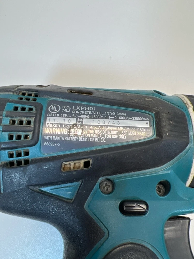 PAWN 1 COEUR D' ALENE MAKITA DRILL & IMPACT W/2 BATT Description: CORDLESS DRILL: MAKITA MODEL LXPH01/LXDT04/DC18RA, FACTORY CARRY CASE INCLUDED Details Condition Rating 93% - Very Good - A well-cared for item that has seen limited use and is fully operational and functions as intended. It may or may not include the original box. Additional Details for eCommerce N/A Cords, Cables, and Attachments 100% - Complete – Includes all cords, cables, connectors, and attachments as included by factory Voltage 18V Factory Carry Case Yes - Factory Carry Case Included Chuck Size 1/2" Battery Type Li-ion Shipping Your item will be shipped within 1-5 business day(s). After shipping your items will be delivered within 1-10 business days. About Us Pawn 1 has been in business since 1979. With a formidable management team and over 100 years of combined experience, Pawn 1 has since opened twenty-six additional stores and employs over 200 employees throughout Washington and Idaho. Our primary mission is the satisfaction of our customers. Our success will result in personal and professional growth for all our employees and a world-class organization to serve our customers. Bravo Omni-Commerce solutions offers Brick & Mortar stores the only fully integrated eBay API that seamlessly & effortlessly combines the in-store Point-of-Sale to all eBay commerce selling activities.