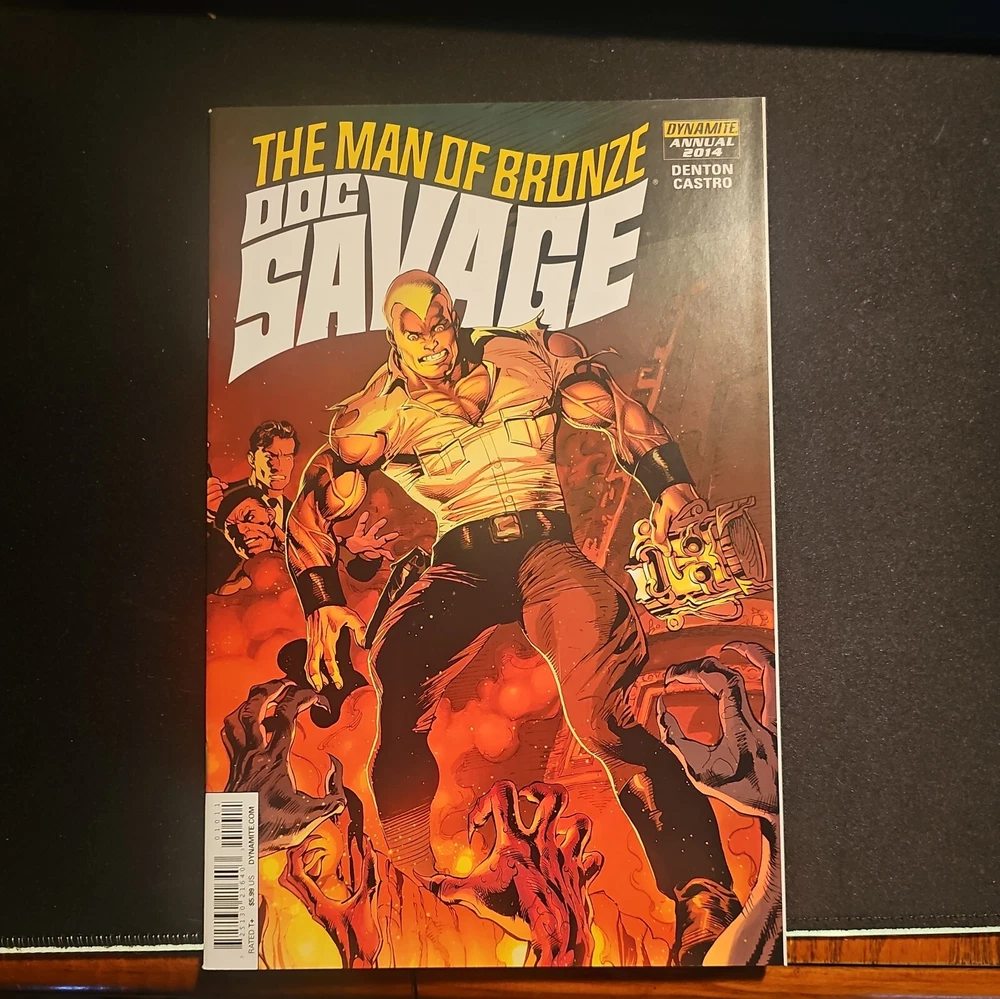 This comic book lot includes like new issues #1-5 of "Man of Bronze: Doc Savage" along with the 2014 annual, all published by Dynamite Entertainment in 2013. The series features artwork by Bilquis Evely and Alex Ross, with writing by Cullen Bunn, and follows the adventures of the iconic character Doc Savage in a modern age setting. The comics are in graded condition and have features like first printing and boarded, making them a valuable addition for fans of action, crime, superheroes, adventure, and noir genres.