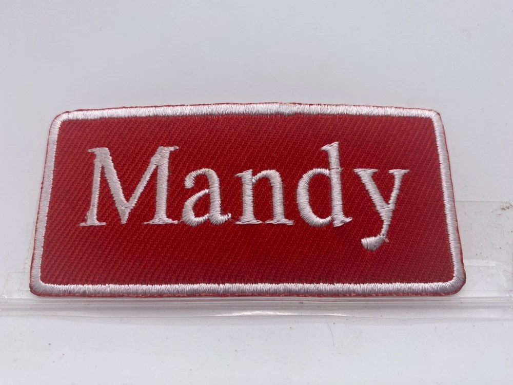 THIS AUCTION IS FOR A NEW EMBROIDERED IRON/SEW ON NAME PATCHES) ( SIZE 1-1/2 INCHES TALL AND 3-1/2 INCHES WIDE) MANDY (BORDER AND NAME EMBROIDERED ) (AVAILABLE IN BLUE ON WHITE RED ON WHITE AND WHITE ON RED (NEW) SHIPPING FOR THIS ITEM WILL BE (FREEEE IN THE U.S.A.) PLEASE PAY THROUGH EBAY. ITEMS WILL BE SHIPPED 1 BUSINESS DAY AFTER RECEIVING PAYMENT. THANK YOU FOR LOOKING! ! CLICK HERE TO Save as Favorite Seller Most items will be shipping in a regular letter envelope and will NOT have a tracking number. All items will be shipped the next day, if you pay before 10:00am pacific time your package will ship same day. If you pay on Saturday you package will ship on Monday unless it is a holiday it will ship on Tuesday. I ship 6 days a week. by 10:00am pacific time. INTERNATIONAL BIDDERS SHIPPING FOR THIS ITEM WILL BE $3.00 FOR THE FIRST PATCH OR SET AND .25 FOR EACH ADDITIONAL PATCH. THANK YOU FOR WATCHING <div style="text-align:center"><a style="text-decoration:none" href="http://mostpopular.sellathon.com/?id=AC583636"><img src="http://www.sellathon.com/Resources/Images/countercredit.gif" border="0"></a></div>