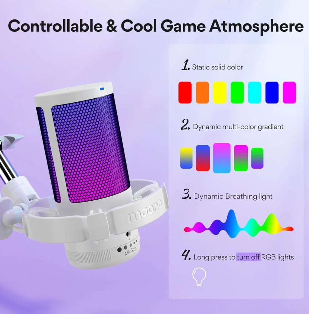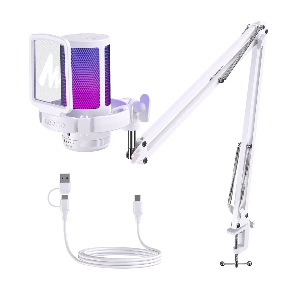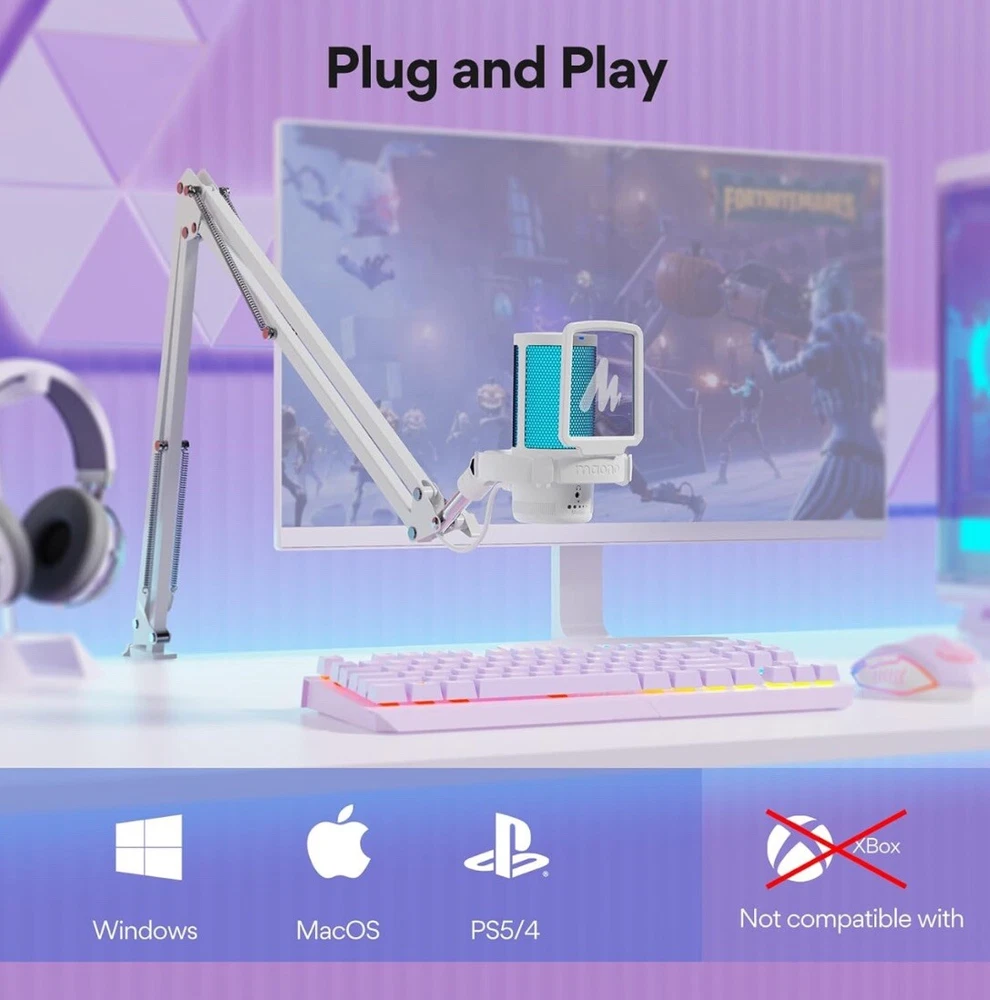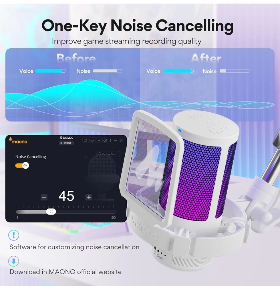 This MAONO gaming USB microphone is a high-quality condenser mic that boasts noise cancellation technology and a mute/gain control feature. It is perfect for gamers and streamers who need a reliable and versatile microphone for communicating with their audience. The microphone is compatible with USB connectivity and has a sleek white color that will complement any gaming setup. The handheld/stand-held form factor and channel strip design make it easy to use and adjust, while the noise cancellation feature ensures that your voice is heard clearly and without background interference. This microphone is a must-have for anyone who wants to take their gaming or streaming to the next level.