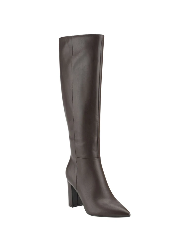 MARC FISHER Womens Brown Comfort Grapple Pointy Toe Block Heel Zip-Up Boots 11 M