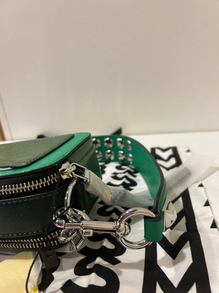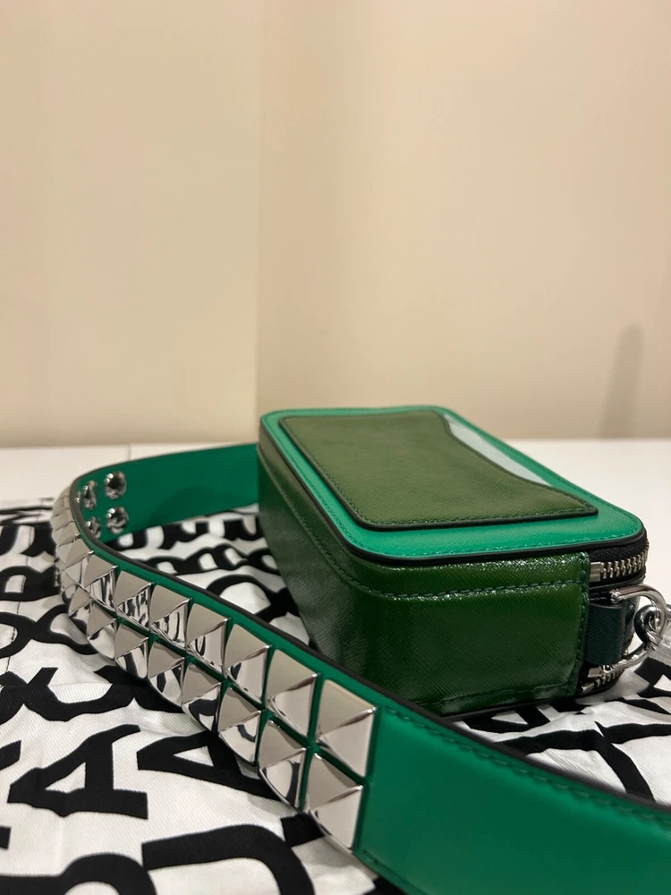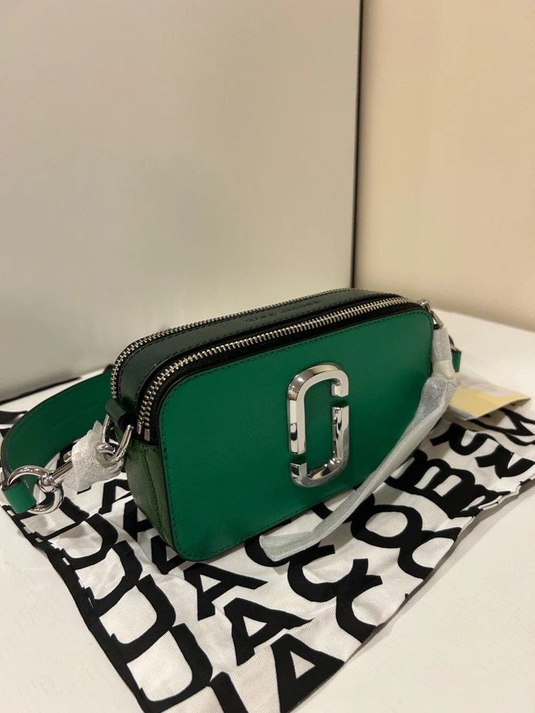 Top Trends Seller Marc Jacobs Snapshot The Croc Chain Accent Embossed Cow Leather Handbag BRAND NEW 100% AUTHENTIC Style: Snapchat Color: Green Material: Leather Measurements: 7.25" W x 4""H x 2.25"D Dual Compartment Zip Closure Silver hardware Interior Slip Pocket Removable, shoulder strap, 12.25" drop DELIVERY Shipping can take anywhere from three to ten business days, depending on the postal service. Usually, it arrives within three to four business days. You can only check where your package is on eBay's website using a tracking number they give you. You won't find this tracking info on other websites or apps. REVIEWS You will receive positive feedback automatically immediately after you leave positive feedback. ALL ISSUES CAN ALWAYS BE SOLVED WITHOUT PROBLEMS.