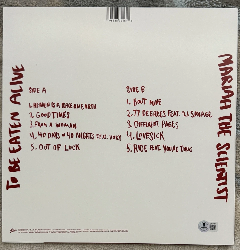 MARIAH THE SCIENTIST SIGNED BE EATEN ALIVE VINYL LP ALBUM - BECKETT COA Scan QR code to ensure authenticity