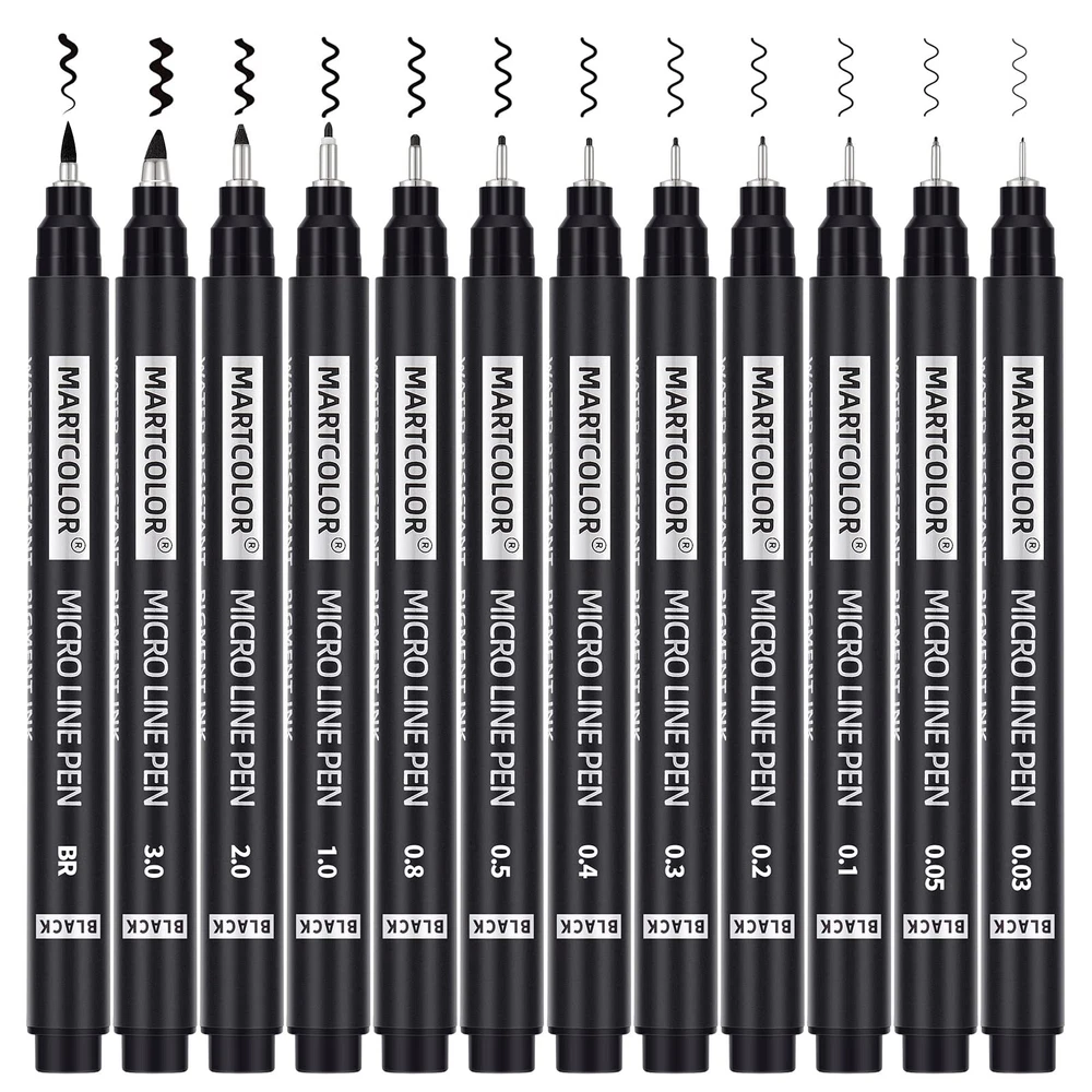 ASSORTED TIP SIZES - Multi drawing pens 12 unique nibs sizes to choose from. Includes 11 micro nib sizes: 0.03mm, 0.05mm, 0.1mm, 0.2mm, 0.3mm, 0.4mm, 0.5mm, 0.8mm,1.0mm, 2.0mm,3.0mm. 1 Soft Brush tip. WATERPROOF PIGMENT INK - Black ink, non-refillable, non-toxic, odorless, archival quality, waterproof, and won't smear, fade, bleed or skip. Our art pens conform to ASTM D4236. WATERPROOF PIGMENT INK - Black ink, non-refillable, non-toxic, odorless, archival quality, waterproof, and won't smear, fade, bleed or skip. Our art pens conform to ASTM D4236. Perfect for drawing, sketching, adult coloring and Bible journaling. WIDE USE - Compatible with pencil, watercolor paint, alcohol marker and highlighter, etc. Perfect for artists, designers, writers, architects, illustrators & calligraphers. Great for bullet journaling, bible underlining, manga, sketch, anime. PURCHASE WITHOUT RISK - Your satisfaction is always our highest priority. If you don't feel satisfied, please Email us freely. We offer our customers complete piece of mind through our unique Money Back Plus Guarantee.